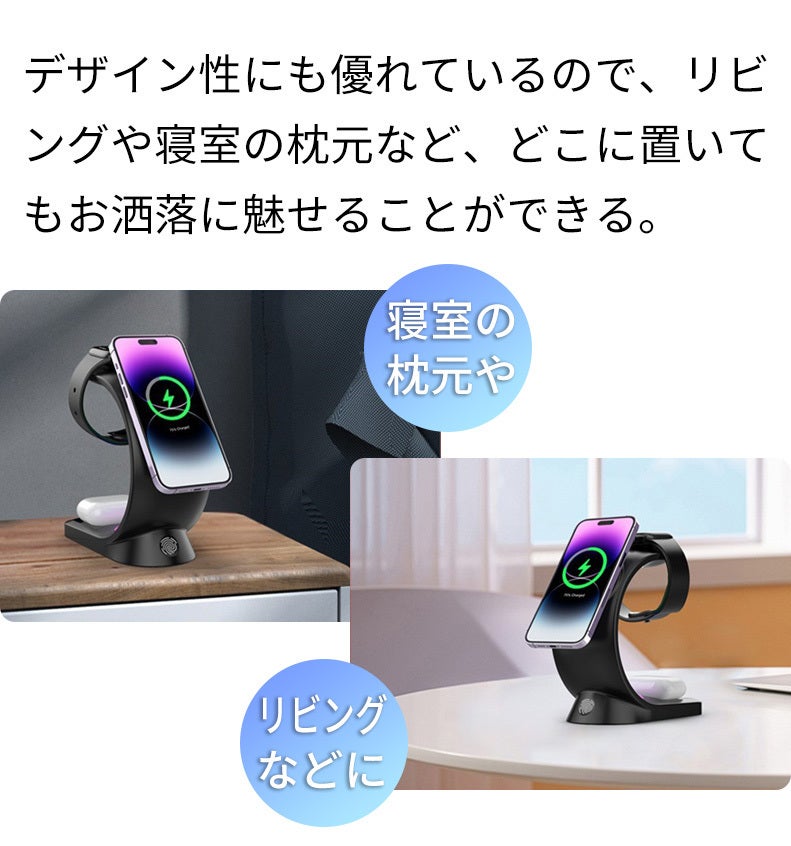 使いやすさとデザイン性を両立♪映える3in1ワイヤレス多機能充電器
