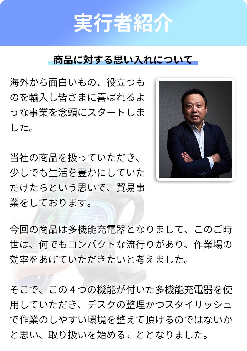 • 皆様、ご支援いただき、誠にありがとうございます。使いやすさとデザイン性を両立♪映える3in1ワイヤレス多機能充電器のプロジェクトは2023年12月31日まで、皆様の温かい支持を賜り、合計3人の方から支援を受け、総額29250円のご支援をいただけたこと、心より感謝申し上げます。製品の品質を保証しながら、製造スピードを向上させ、できるだけ早くお届けできるよう努力いたします。皆様のお待たせになることをお許しいただき、心より感謝申し上げます。今後も一早く新商品を皆さまにご提供させていただきたいと思いまして、情報の共有を当社のライン公式にて随時ご報告できたらと思っております。是非下記より、ライン公式へ登録していただけますと幸いです。当社公式ラインはこちら皆様のご理解とご支援に心より感謝申し上げます。 もっと見る