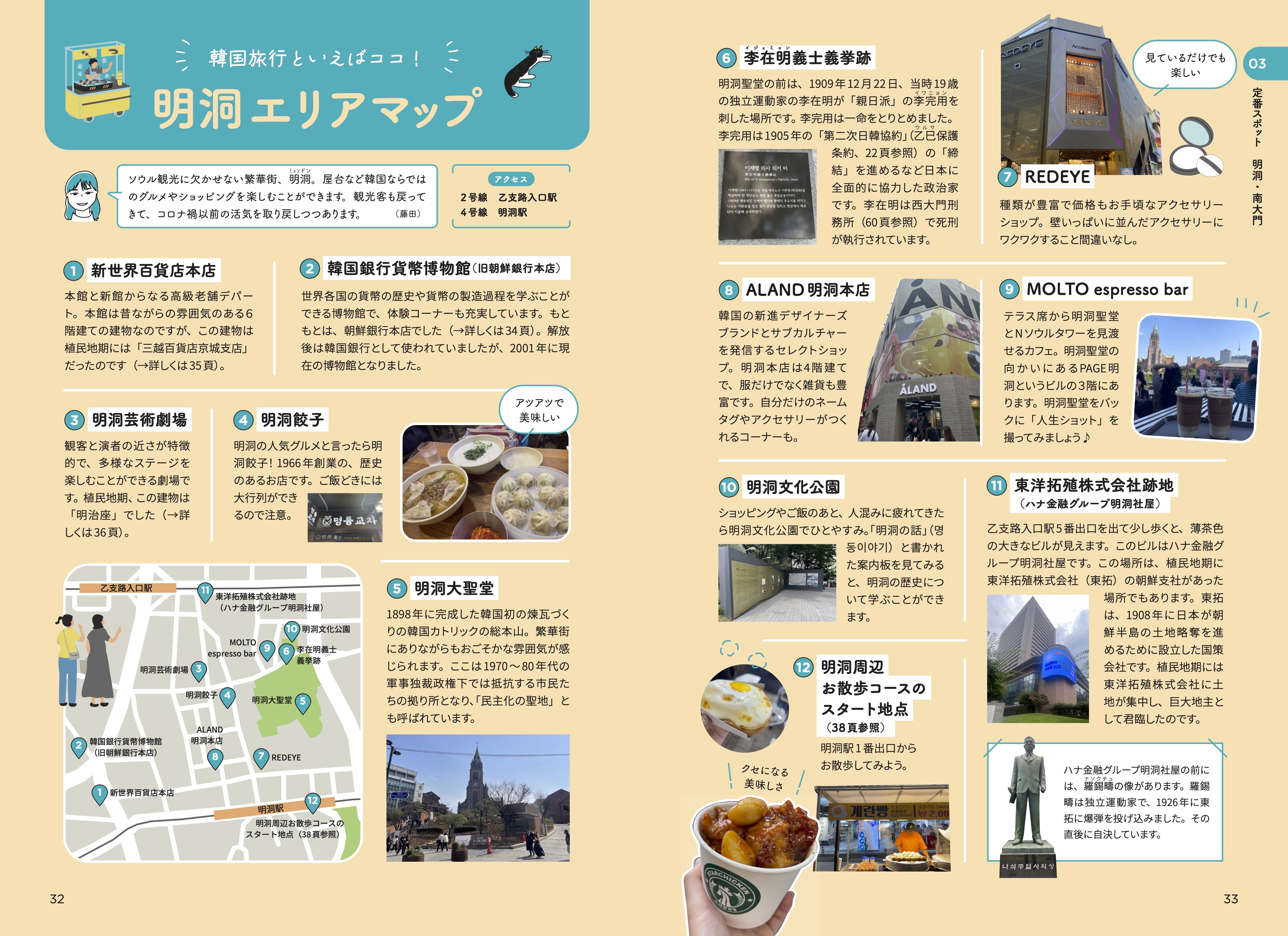 「モヤモヤ本のその先」を目指すものとして、ガイドブックを選んだのは、2022年度のソウルゼミ合宿がきっかけです。ゼミ生の多くにとって「はじめての韓国」となった合宿では、今まで画面越しでしか見られなかった「韓国」を、実際に体験することができました。いろいろな場所を巡っている中でわたしたちは、その場所の歴史を伝えるモニュメントがあちこちにあり、それらが明洞をはじめ代表的な観光地にもたくさん存在することに気が付きました。