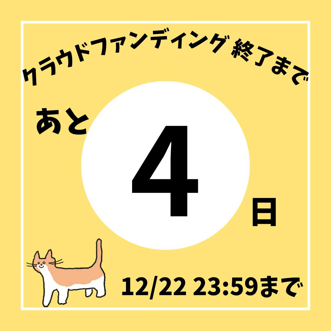 クラウドファンディング終了まで残り4日間となりましたが、無事200万円達成できるよう引き続き拡散よろしくお願いいたします!