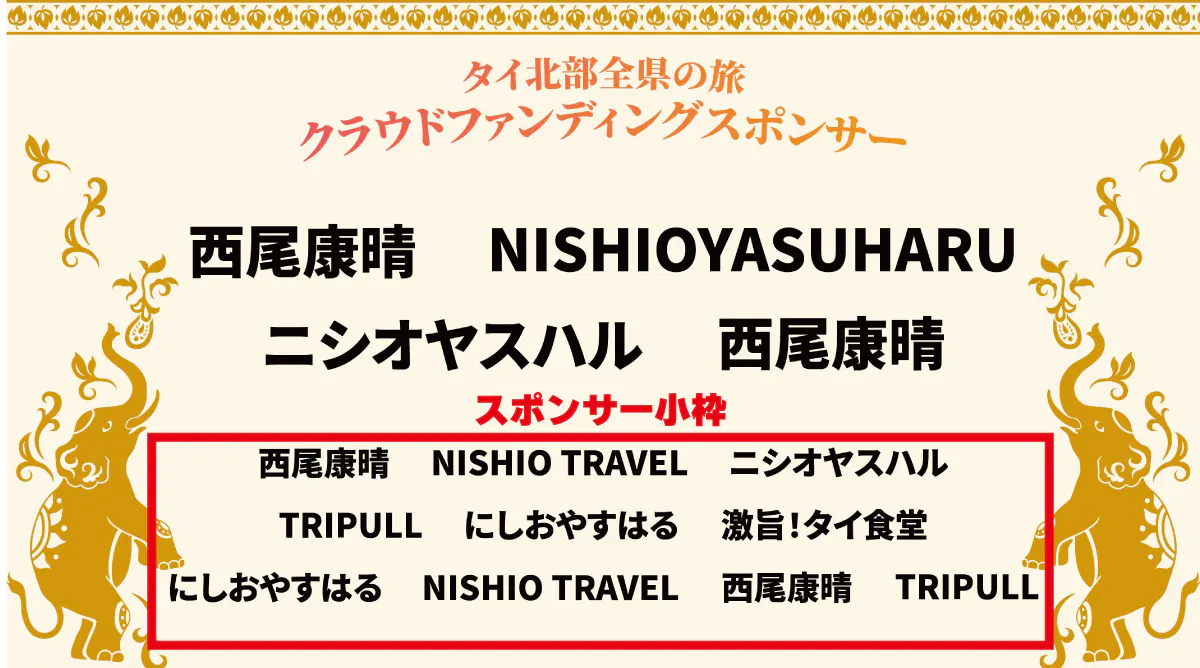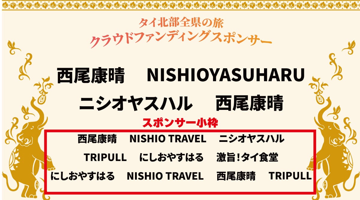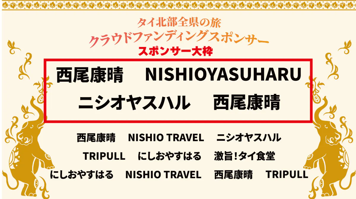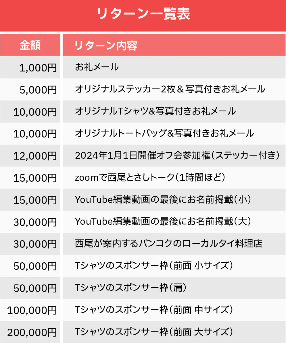 「タイ北部全県の旅」でのクラウドファンディングにご支援してくださった方々には、以下のリターンを用意しております。