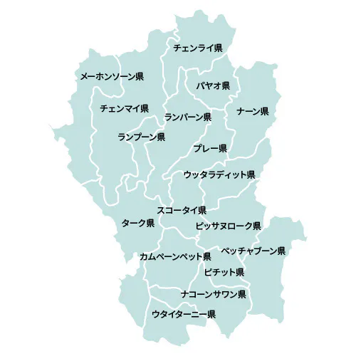 北部は全17県で構成されており、文化や経済の中心となっているのはチェンマイです。