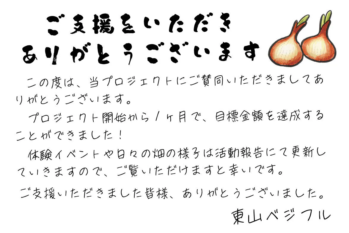 皆様のあたたかいご支援のおかげで、目標を達成することができました。