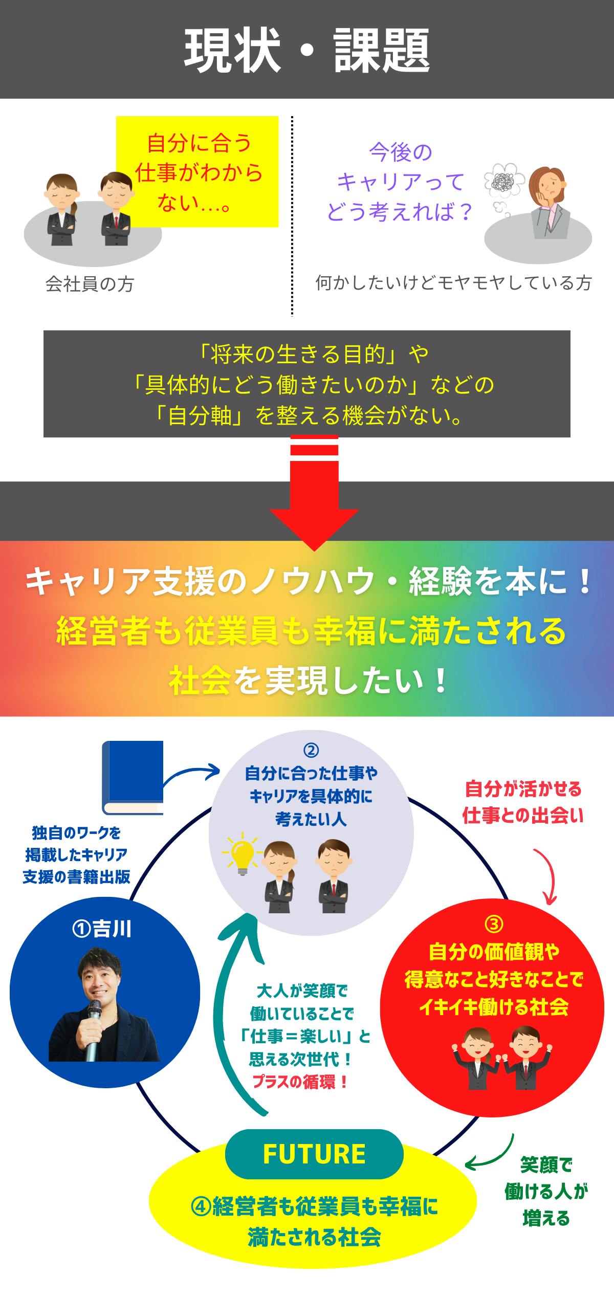 私は「経営者も従業員も幸福に満たされる社会」を実現するために活動をしています。当プロジェクトは書籍出版ではありますが、このビジョンの実現のためにおこなうものです。