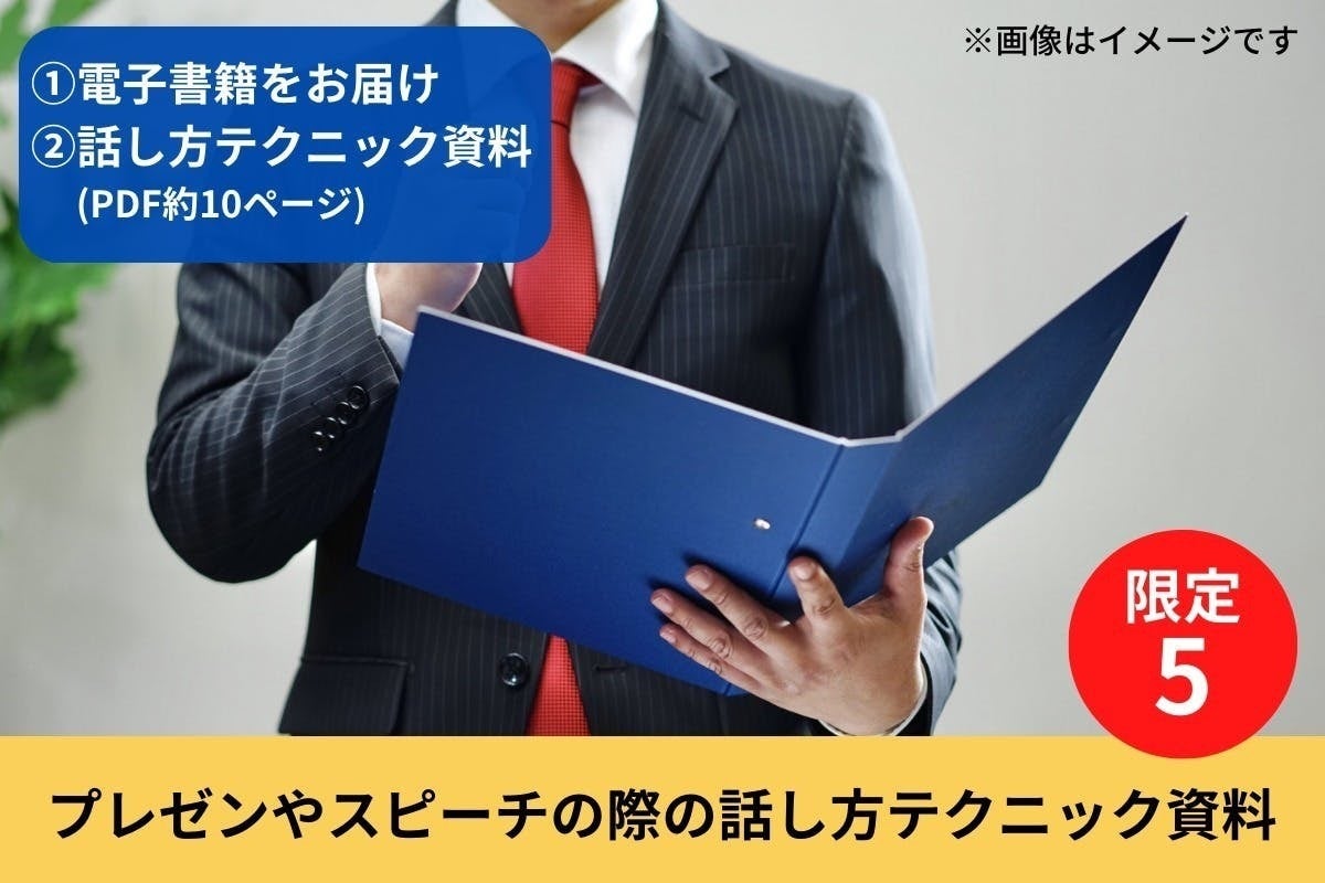 ②プレゼンテーションやスピーチの際の役立つ話し方テクニック資料をお届けします。セミナー・スピーチにすぐ使える!