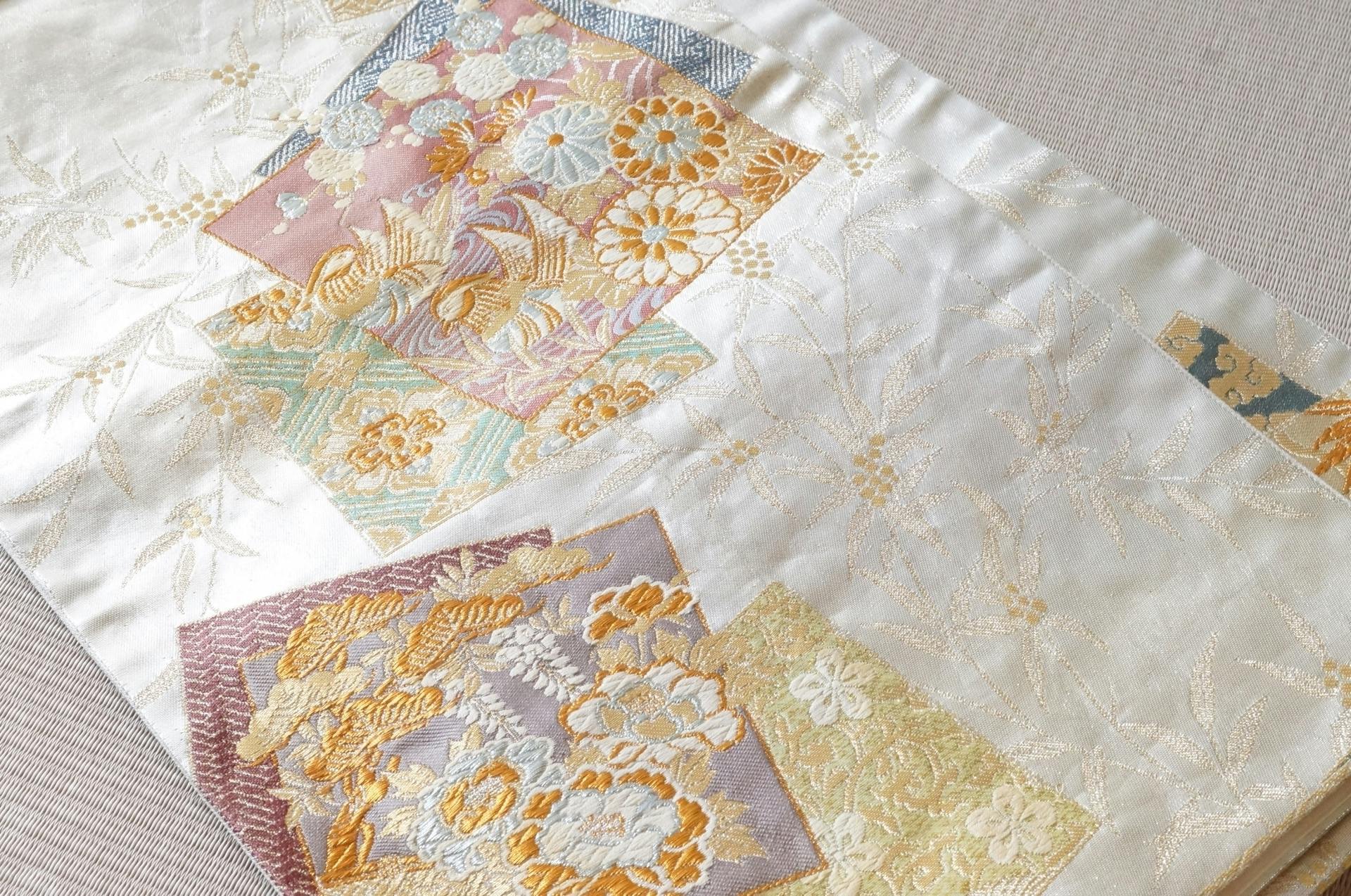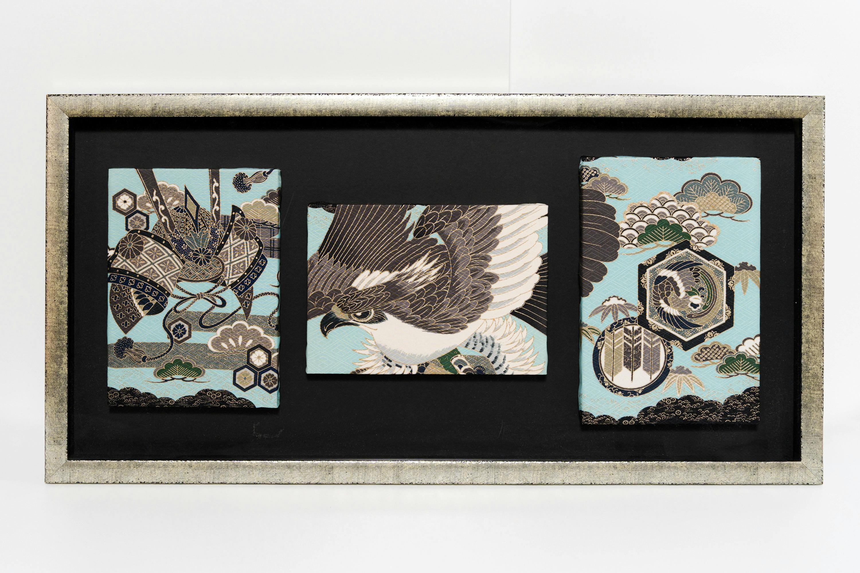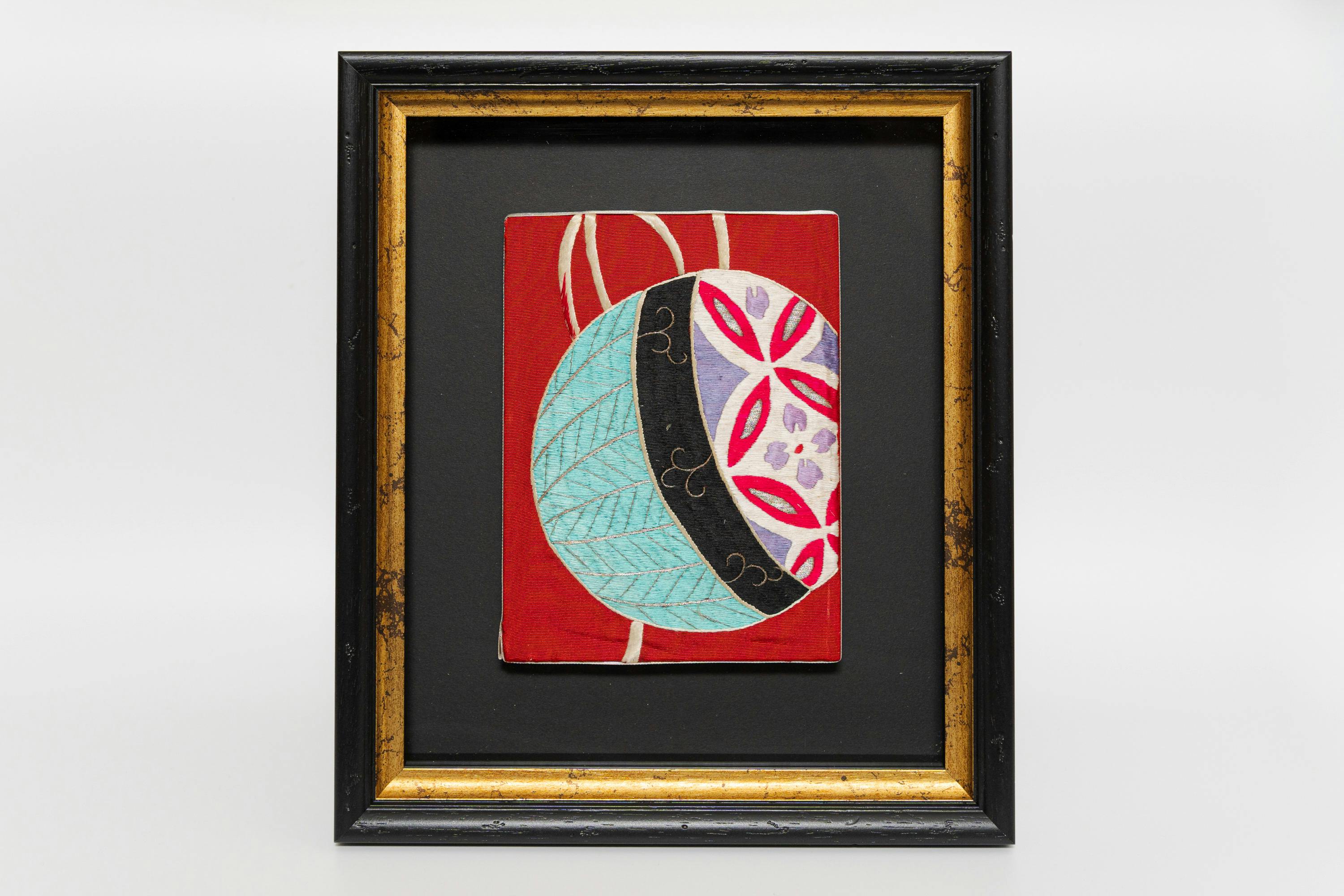 古い着物の中には、傷んでいてマフラーにはできないものも数多くあります。マフラーとしては生地の面積が足りなくても、綺麗な部分が残っている着物をなんとか生かしたいと試行錯誤し、アートパネルの開発に漕ぎつけました。