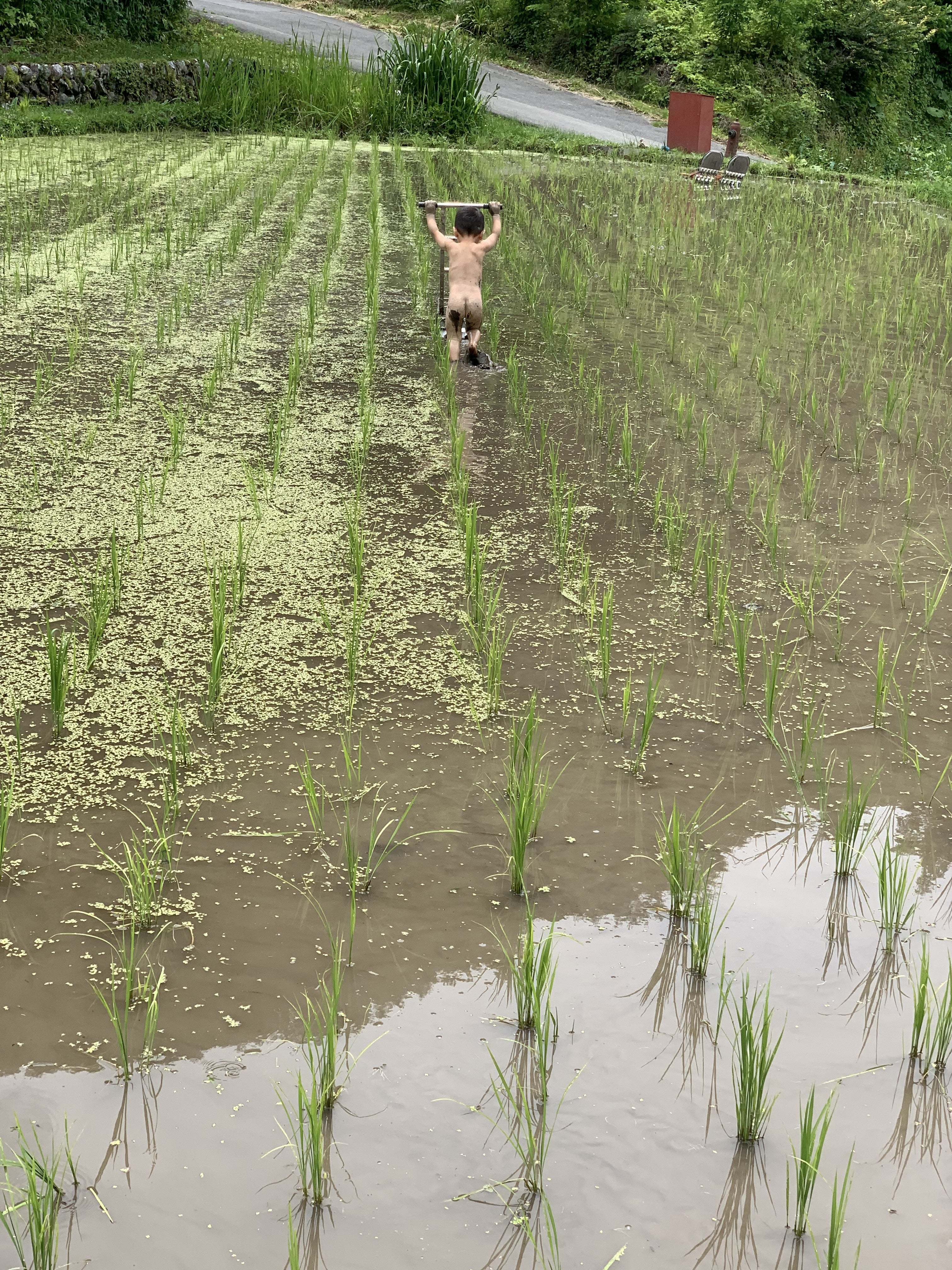 移住して半年ほどでコロナ禍になりました。外出制限がある中で僕たちが考えたことは、スーパーで食材が買えなくても、生きていける知恵をつけていきたい、自給率をあげていきたい、そんな気持ちから畑で野菜を育てたり、お米を作ったりし始めました。ここでも息子は泥まみれ。息子にとって、畑や田んぼは最高の遊び場です。野菜やお米を育てる難しさもありますが、自分で育てたものはとても美味しく感じます。コロナ禍でも畑作業で外に出たりしていたので、息苦しさは感じませんでした。