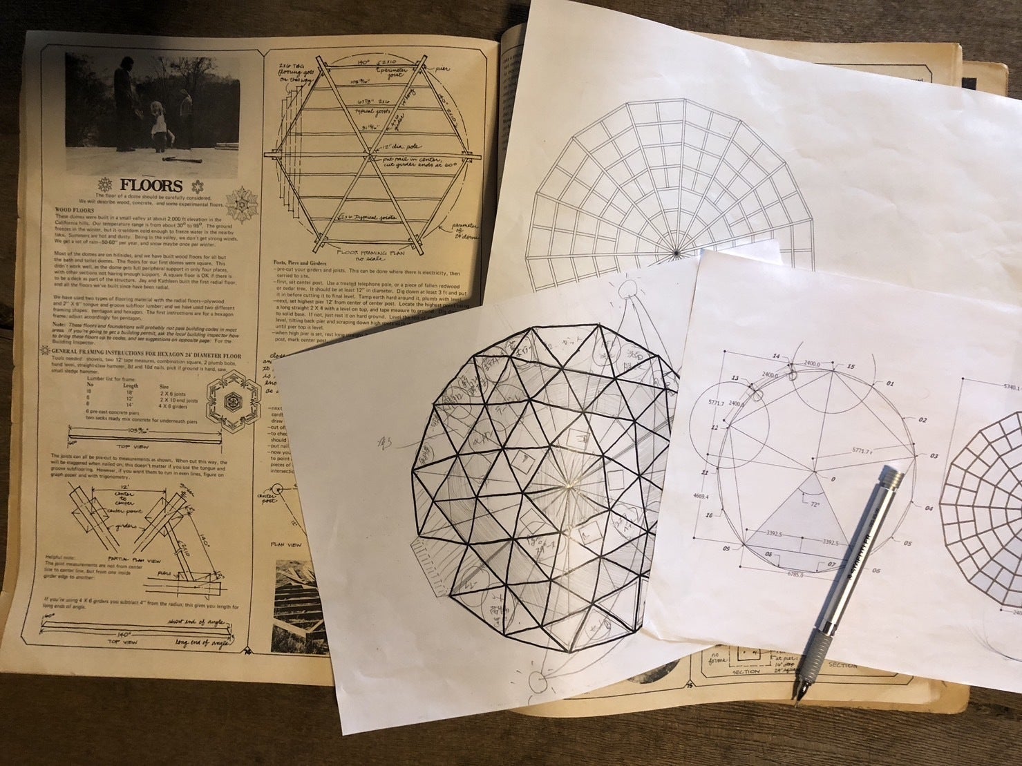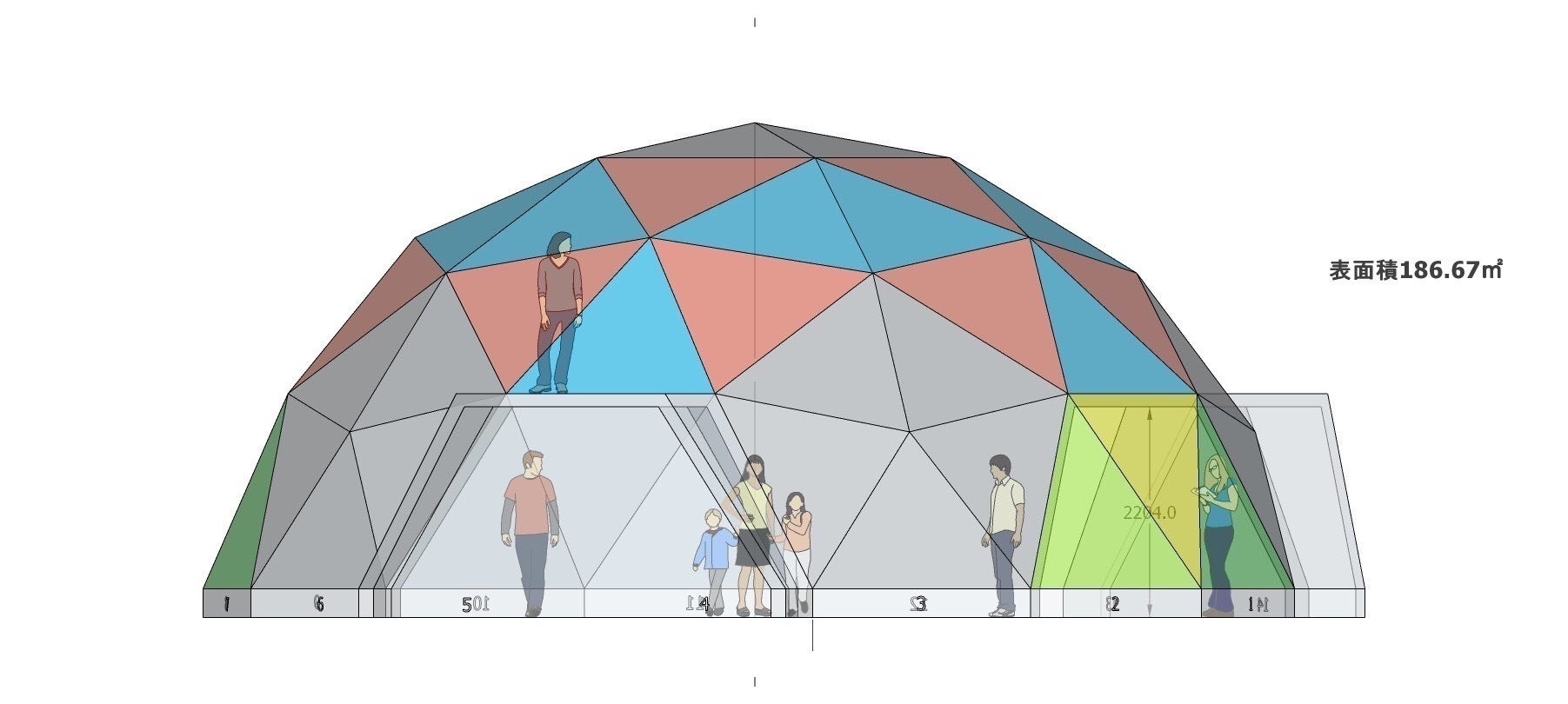 移住促進のためには、県外からのお客様も、子育て世代のお客様も、たくさんの方に来て頂きたいと思っております。そのためには、少しインパクトのある事をしよう!ということで、ドーム型の建物を建てることにしました。また、僕たちが移住してきてどんな暮らしをしているかを知ってもらうためにも、自宅兼美容室を建設しようということになりました。僕たちの暮らしを見て頂いて、不安や疑問を払拭し、移住のきっかけになればと考えています。ドームの設計は、ドームプロジェクトの小林さんにお願いしています。ドームになる三角パネルを作ってくださいます。ドーム愛が強く、細やかな設計をされています。ドームの組み立ては、大工さんとも相談しながらのセルフビルドで建設していきます。