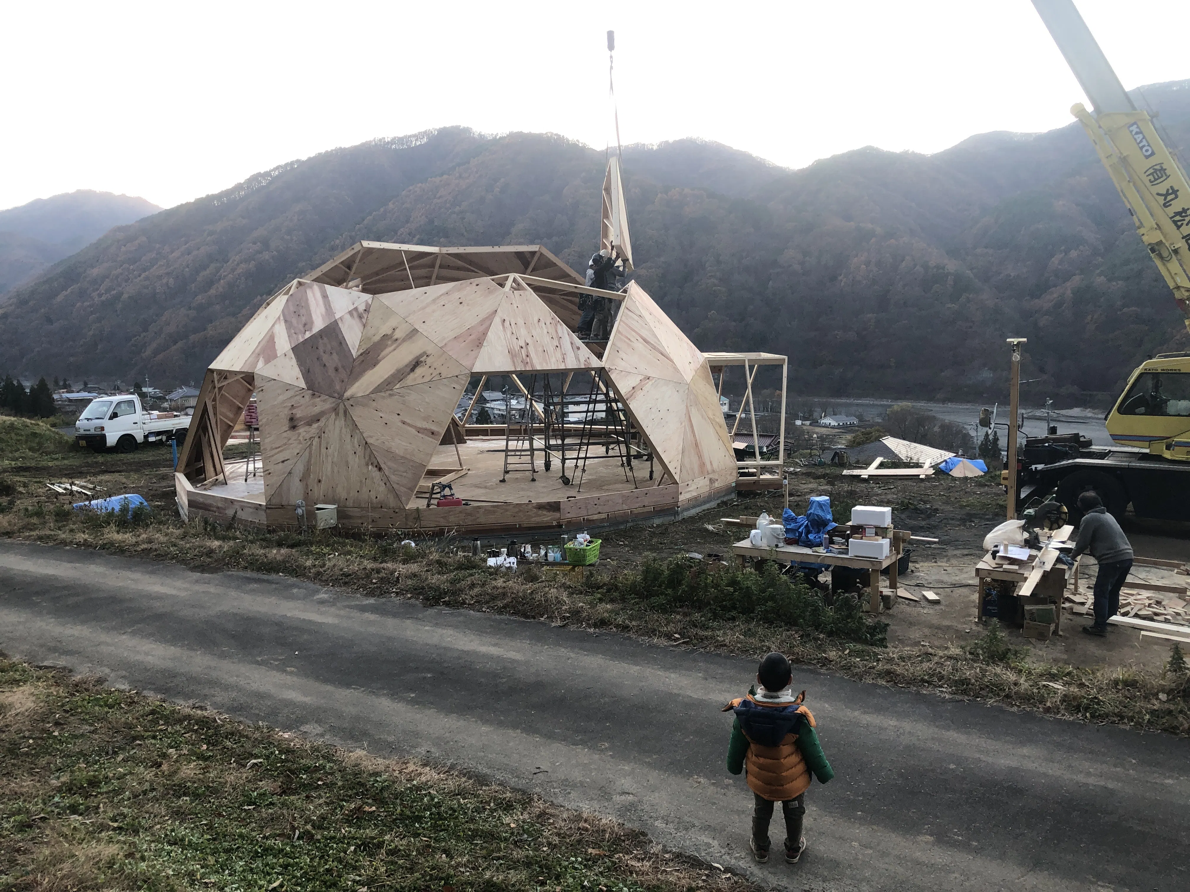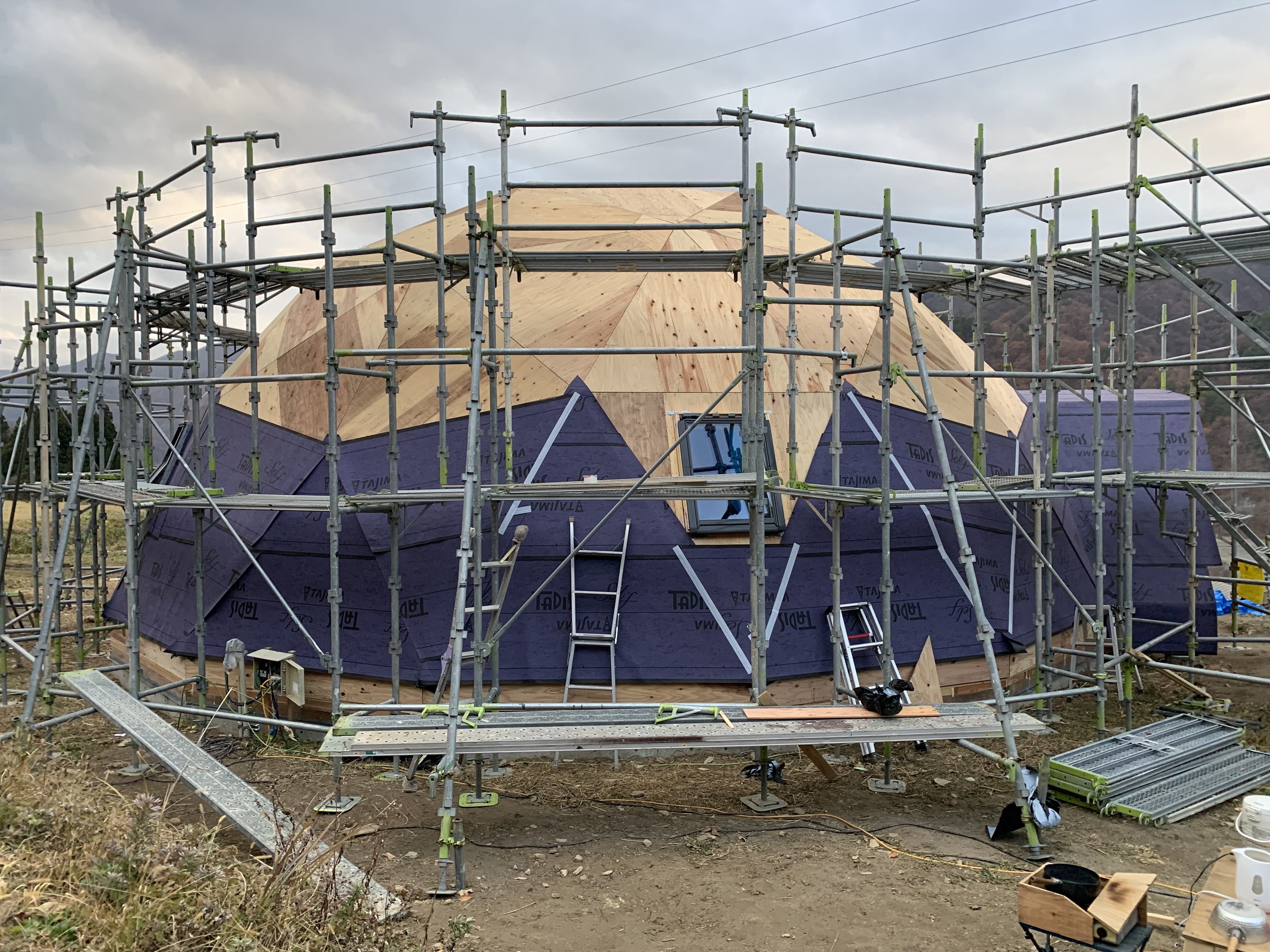 2023/12/06 18:123日目。頂上まで屋根が組み上がりました。ドームプロジェクトの小林さんのドームハウスは、3日で組み上がります。鍜治は記念に屋根に上がりました。ここまできて、大喜びの私たち。しかし、ここからが大変だということをまだ知らないのである、、、。続く。 もっと見る