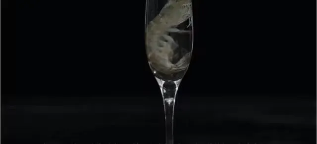 エビをドライアイス上に置く実験しています。※断熱性実験はSUPIELD・S.KISTLER試験室で行われたものです。