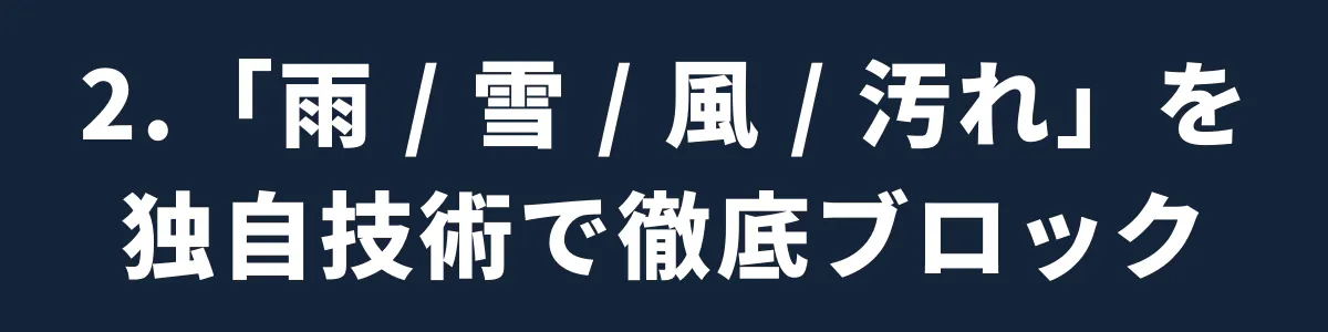 2.独自求術で、「雨・雪・風・汚れ」を徹底ブロック!