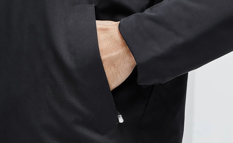 エアジャケット WILDは、従来の反射ロゴやファスナー付きポケットの機能はそのままに、内側にファスナー付きポケット、ウエスト部分に防風バンドなど、新しい機能を追加しました。