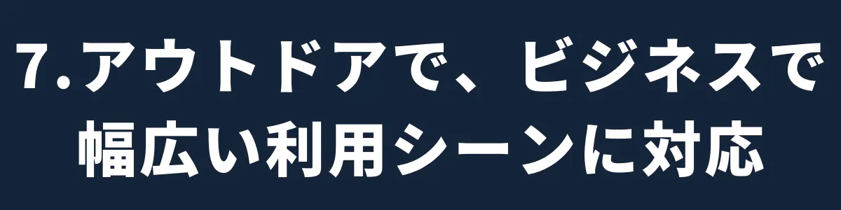 7.アウトドアでビジネスで、幅広い利用シーンに対応!