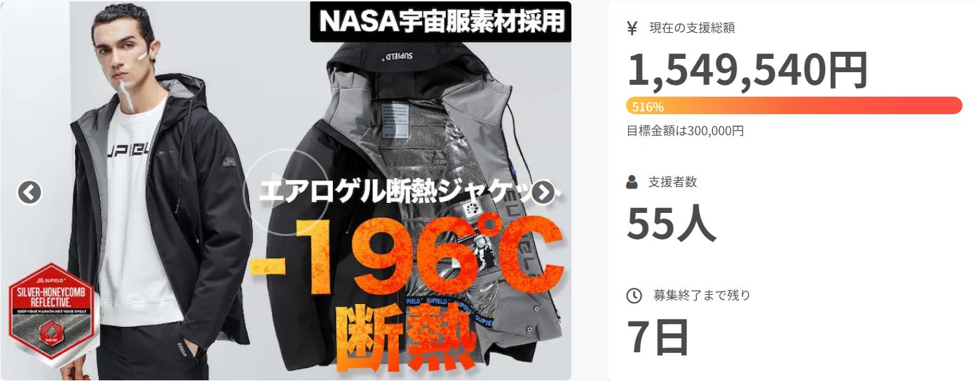 【エアジャケットWILD】プロジェクト終了まで、残り7日となりました!