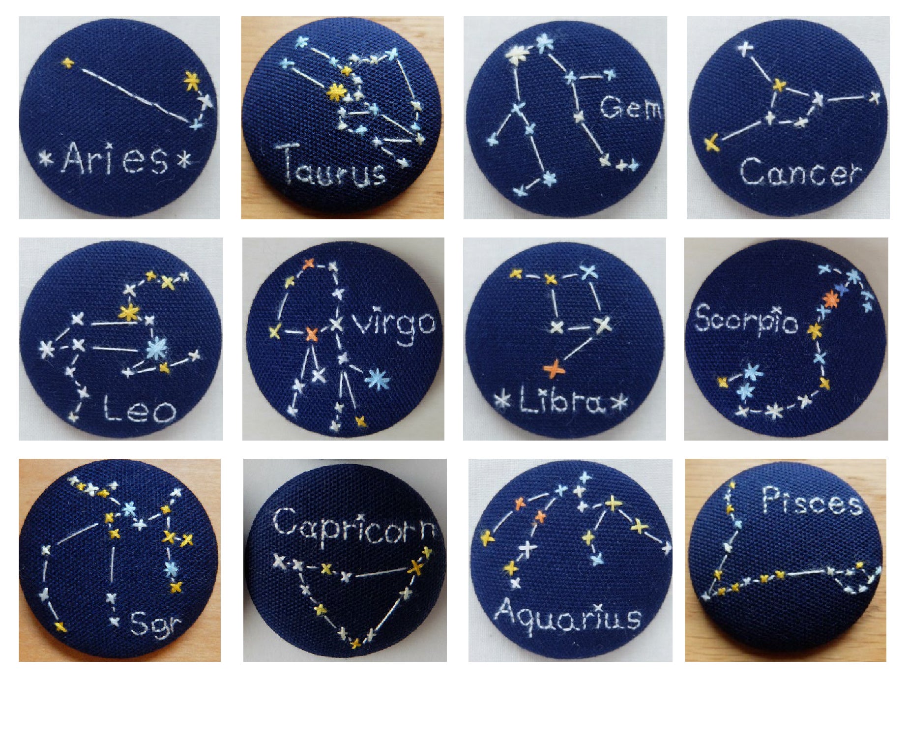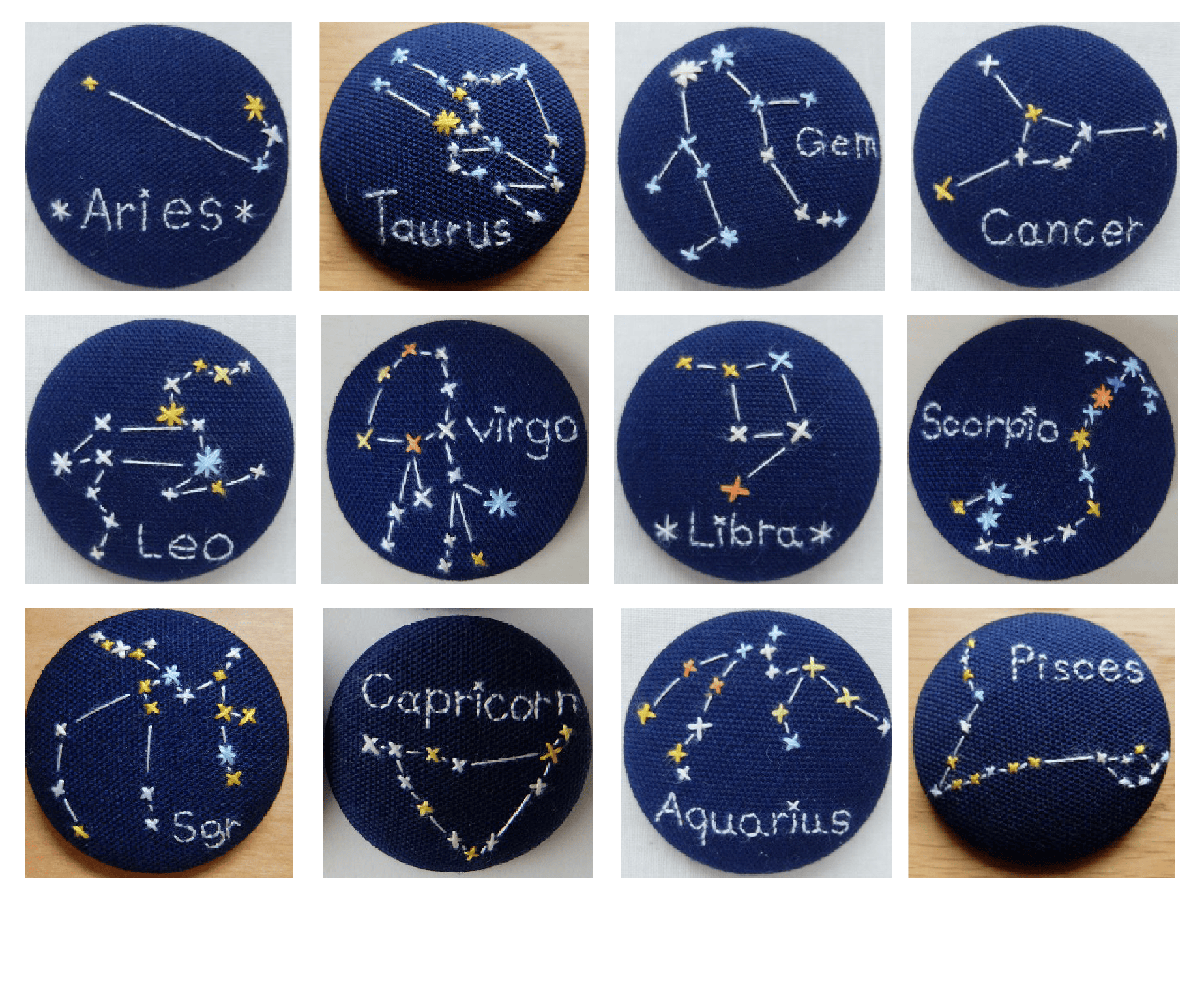 写真はリターンのうちのひとつ、【12星座をデザインしたくるみぼたん】のデザイン一覧です。検討している方は参考にしてください(^^)