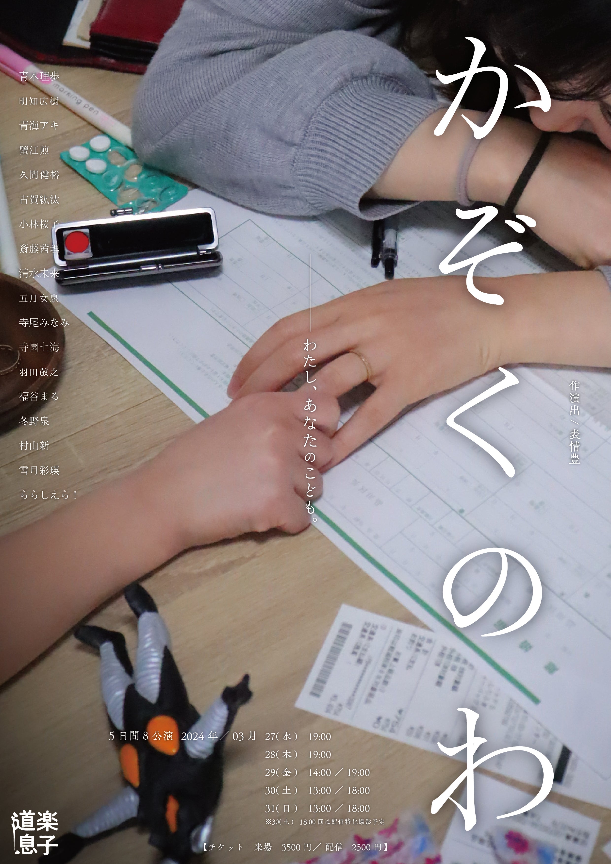公演中止後はショックのあまり放心し正直何も手がつかない状態でしたが、時間の経過と共にどうしても皆様に生で見て欲しいという思いが沸きあがってまいりました。また、この公演に関わってくれた、キャストやスタッフの皆でもう一度「かぞくのわ」を作り上げたい、どうにかしてこの作品をお客様へ届けたい、という気持ちで、今、この文章を書いています。