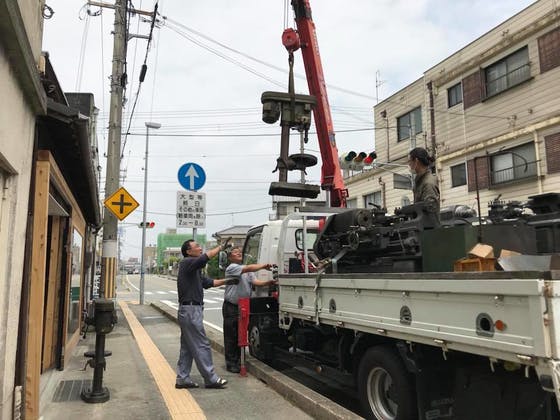 美理容鋏で知られるモルクシザー(河島製鋏所)の社長様のご好意で、知り合いの機械を運ぶついでに持ってきてくださいました。