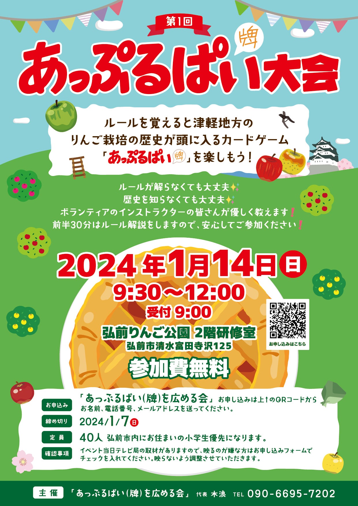 2025/12/24 12:05あっぷるぱい(牌)を愛する皆さまへメリークリスマス!年末年始のお忙しい中失礼いたします。来る、2026年2月23日(月・天皇誕生日)、第5回あっぷるぱい(牌)世界選手権大会が開催されます。皆さま奮ってご参加ください。今回は後援に平川市社会福祉協議会さまが特別協賛にリッチモンドホテル青森さまが、協力頂ける事となりました。ロイヤルホストデリクーポン5,000円2セット、あっぷるぱい(牌)3セット他点数上位者からお好きな景品を選んでいただけます。ぜひ、ご家族皆さんで参加してください。また世界選手権大会と銘打っていますので、世界中の方にご参加頂きたいです。お誘いあわせの上参加してください。お申込みはこちらhttps://forms.gle/5LbP7rvyFbT3pXj2A宜しくお願いいたします。あっぷるぱい(牌)を広める会木浪真由美 (090-6695-7202) もっと見る
