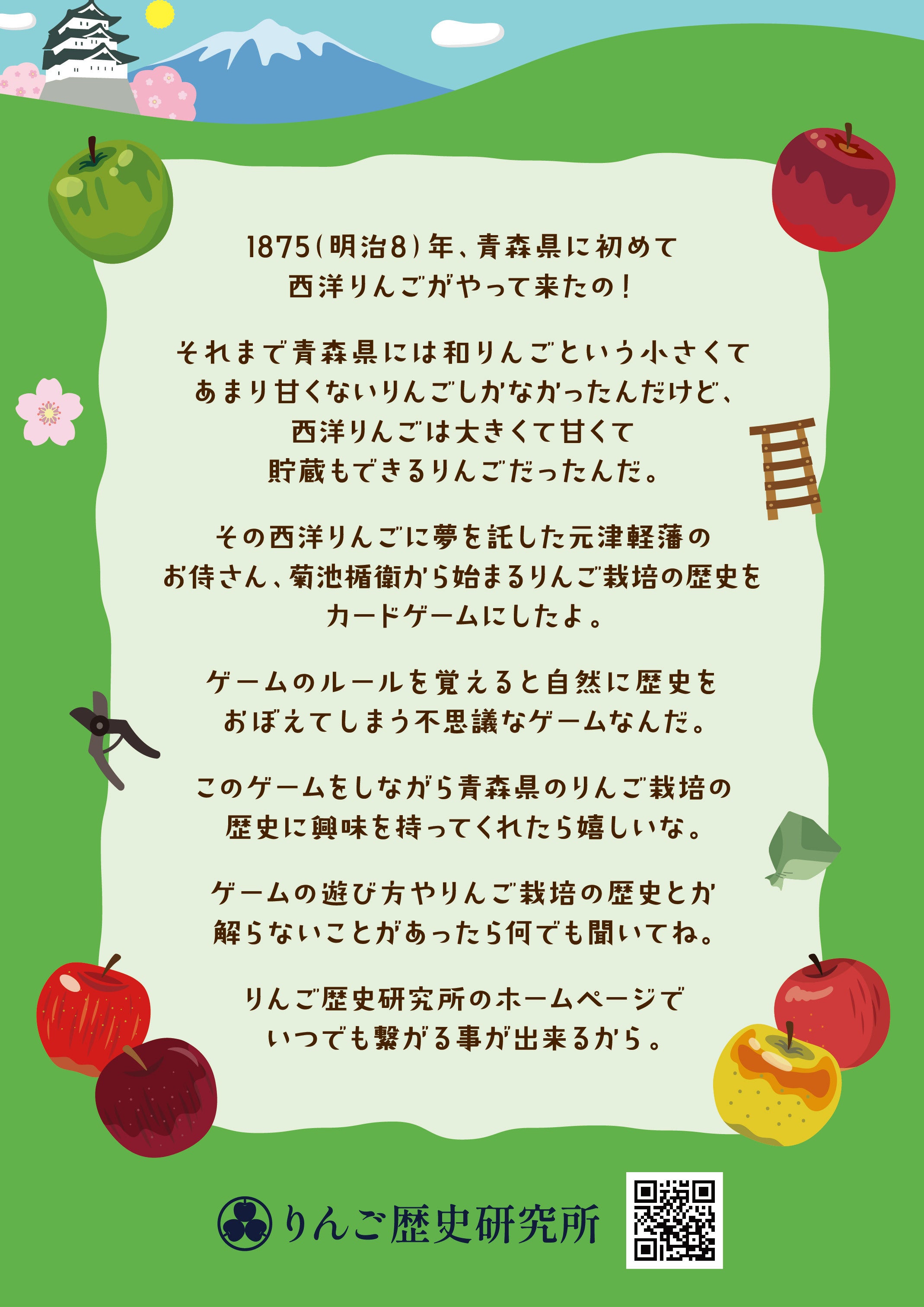 ルールを覚えると自然にりんご栽培の歴史をマスター出来るカードゲームあっぷるぱい(牌)を開発しました。