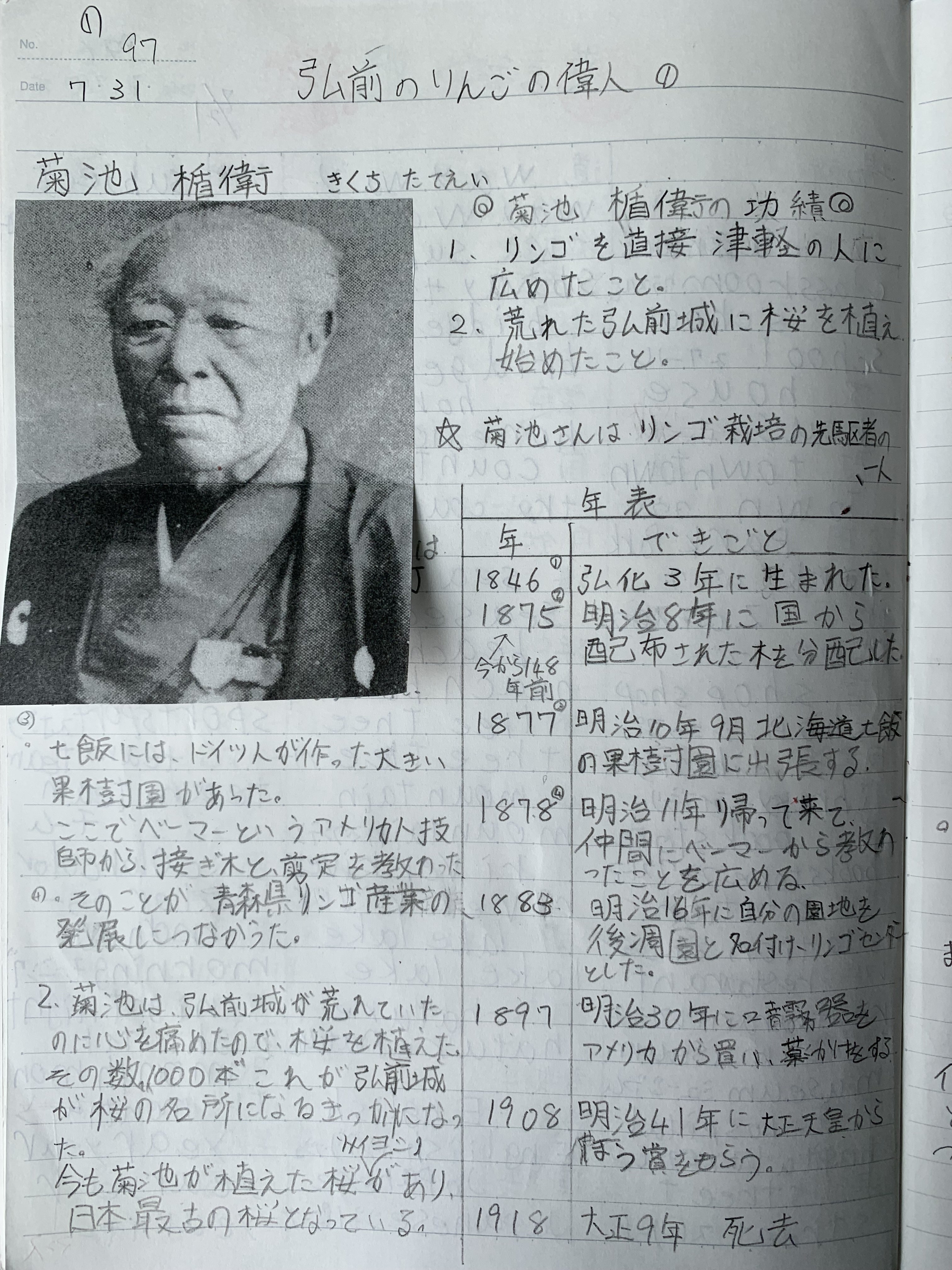 りんご栽培の偉人に菊池楯衛(きくちたてえ)さん、外崎嘉七(とのさきかしち)さん、渋川伝次郎(しぶかわでんじろう)さんに登場頂きました。りんご栽培と歴史そして品種についての記事をりんご歴史研究所のSNSとホームページで配信しています。