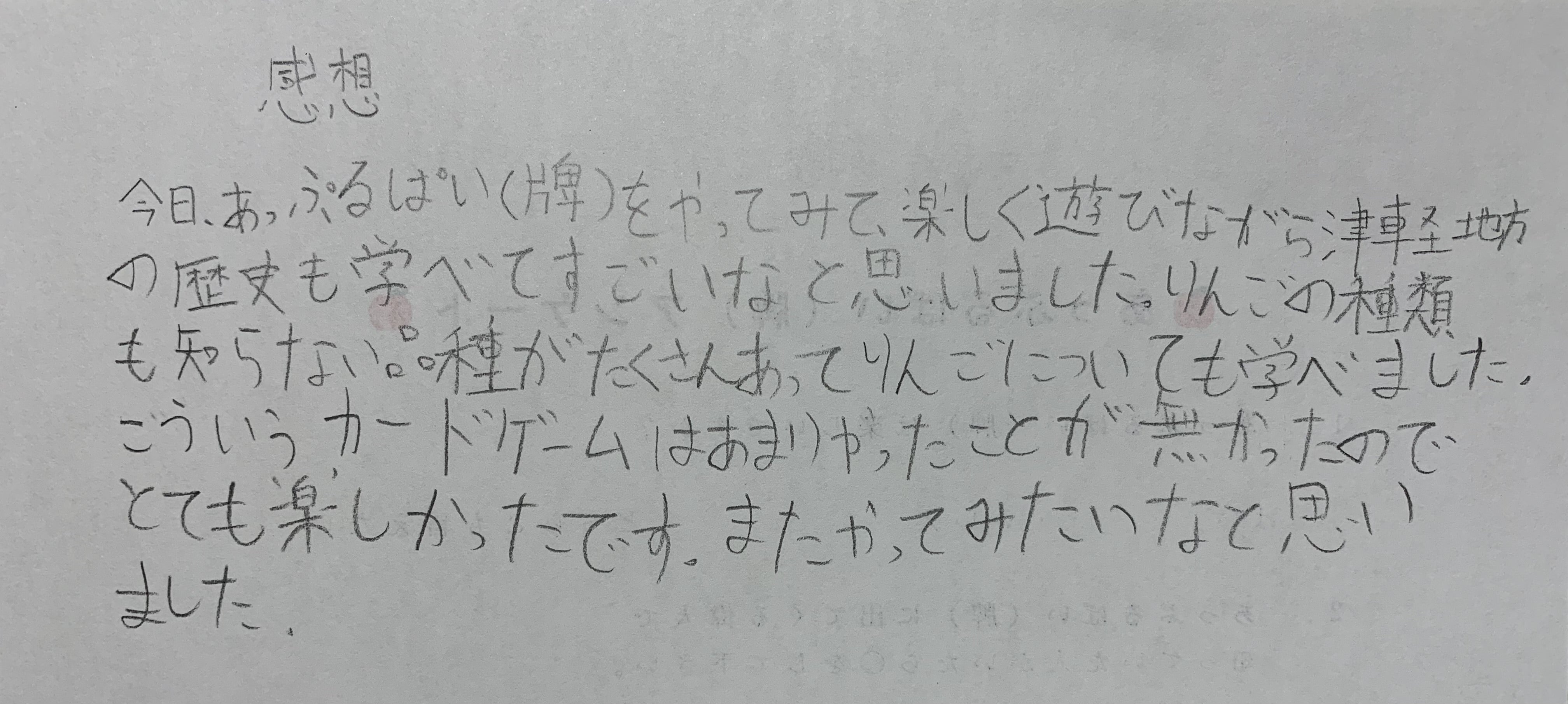 子供たちの中にはカードに出てくる偉人の菊池楯衛さん・外崎嘉七さん・渋川伝次郎さんを夏休みの自由研究のテーマにした子や、りんごの品種に興味を持ち始めいろいろ調べている子もいました。