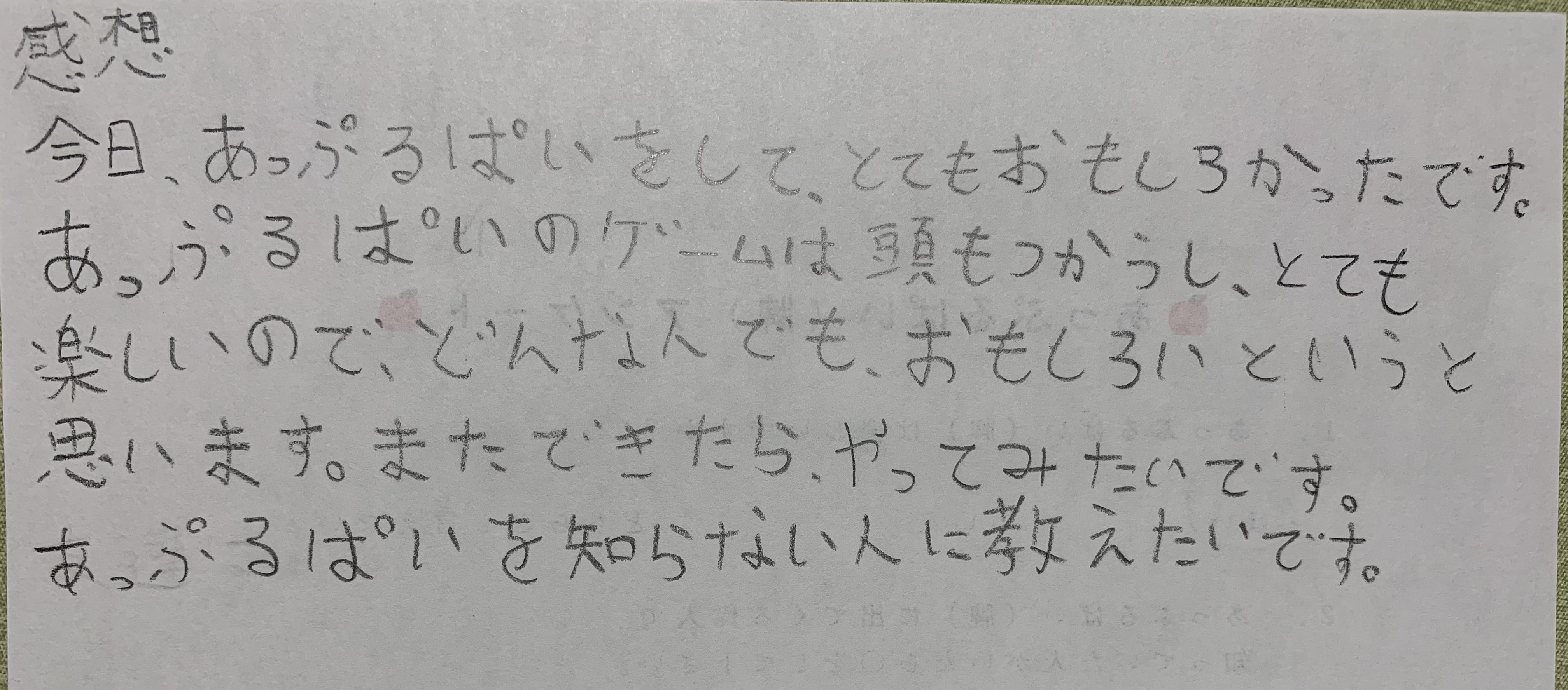 また、ゲームの性質上歴史やルールの説明をする人がいると盛り上がることがわかりました!今後はそういった人材を育てる為、あっぷるぱい(牌)インストラクター養成講座を開設予定です。県内の中学生高校生大学生に呼びかけインストラクターを増やし、一通りの歴史のおさらいをしてもらいます。りんごの木で作られた認定バッチが授与される予定です。更に、そのバッチを欲しいと思う小学生が増えたらいいなと思っています。
