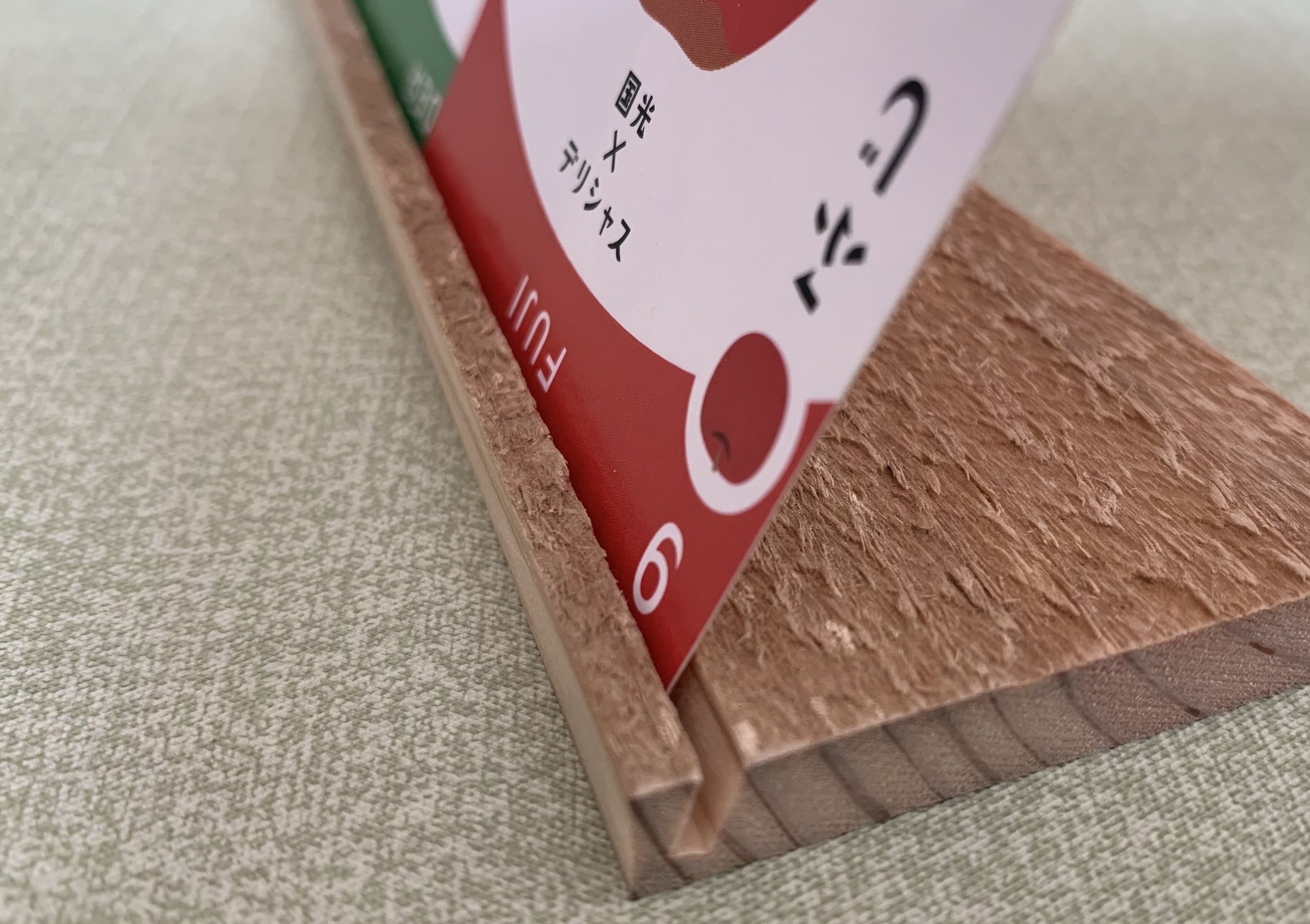 また付属品のカードスタンドは、寿命を終えたりんご箱をリサイクルした素材を使う事になりました。