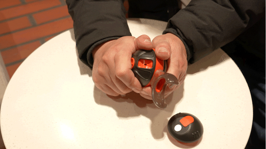 エイブルフィットの本体はピンポン玉より少し大きい直径6cmの手のひらサイズ。