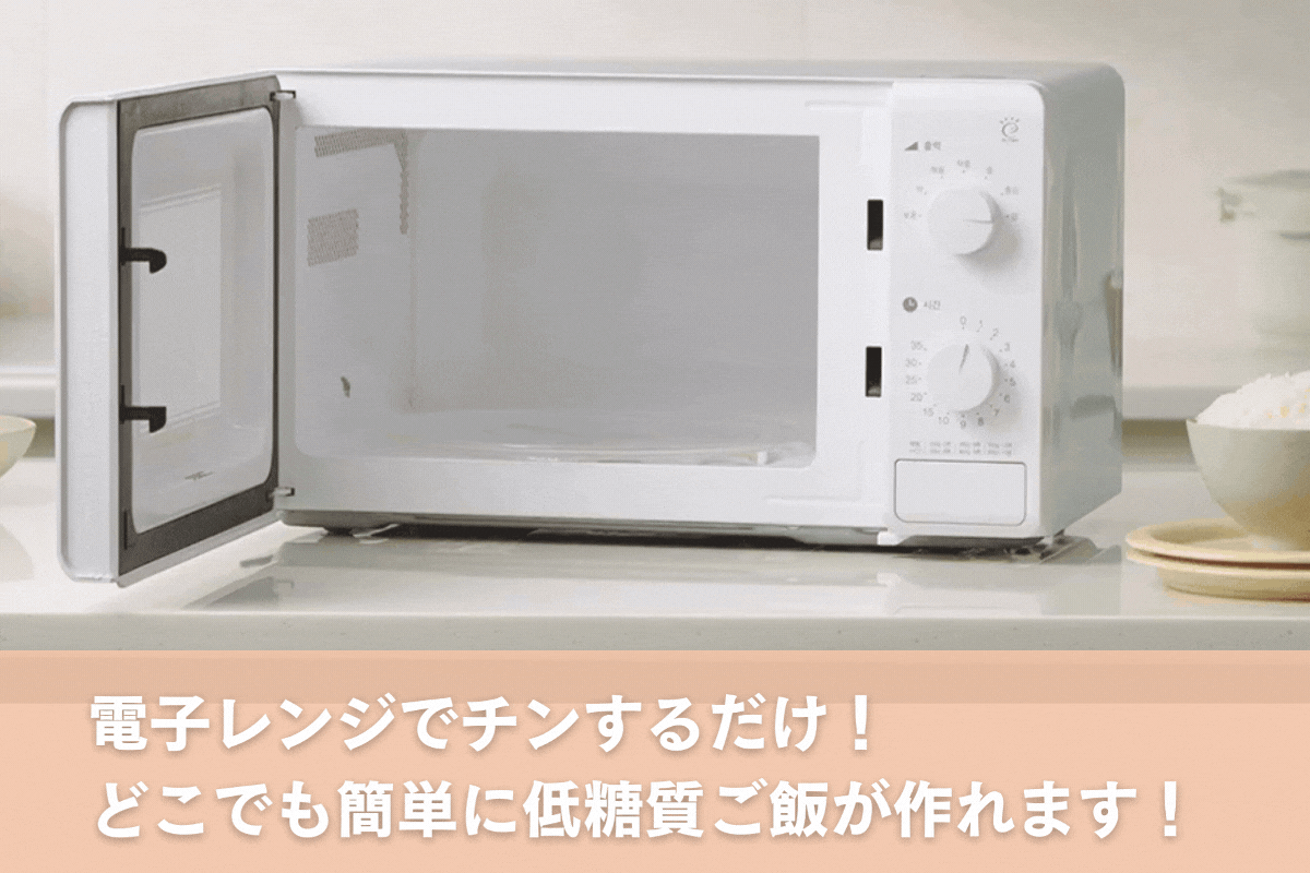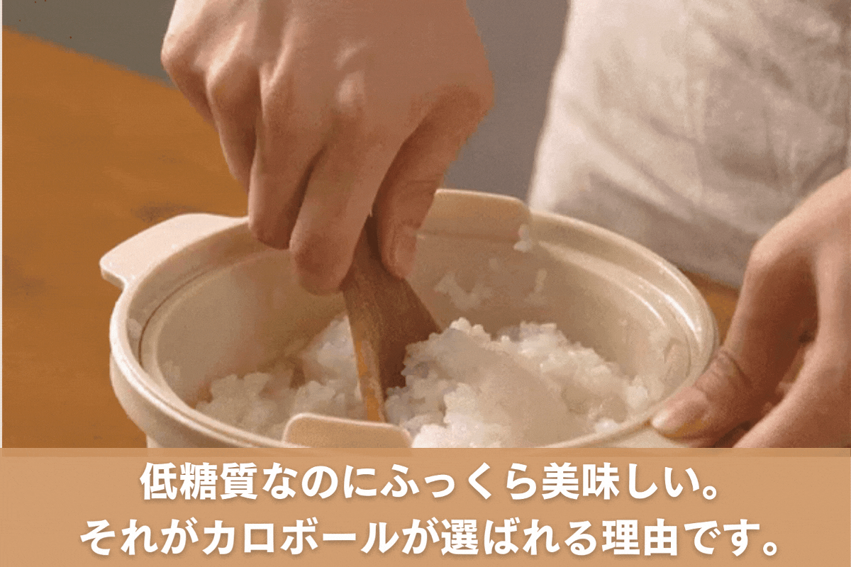 カロボールは、電子レンジでたった12分 で、 炭水化物を抑えたふっくら美味しいご飯 が簡単に作れます!