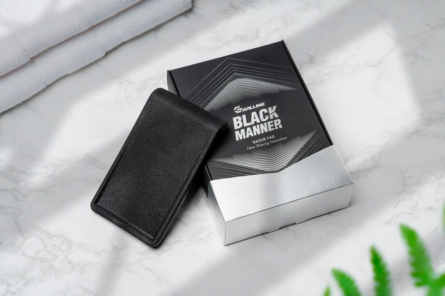 鏡に直接貼って、このような角度にも。見えにくく剃りにくい部分にも、光が当たって、しっかり見ながら快適に剃れます。