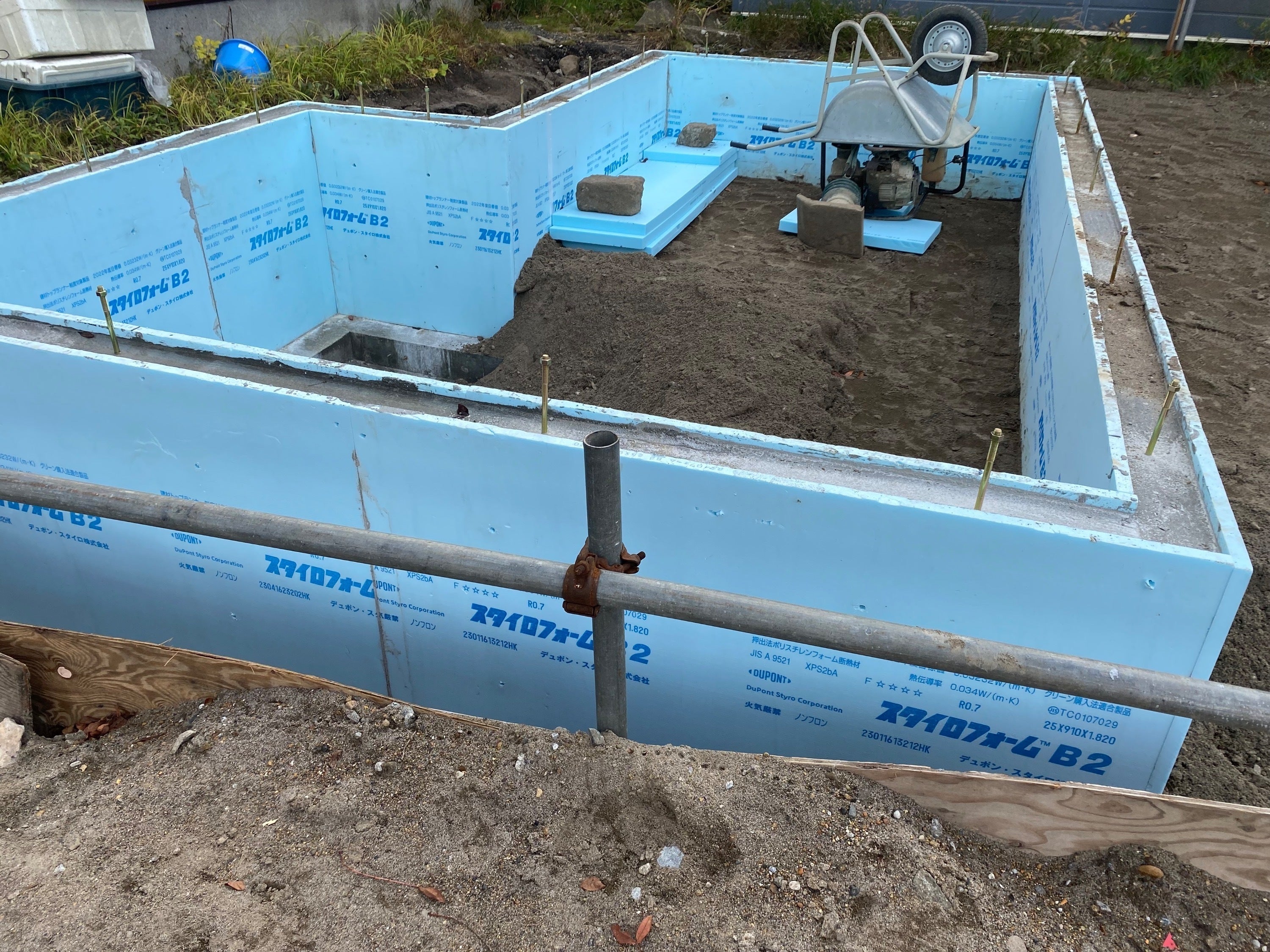 お店の基礎ができ、水道管の工事が終わりました!