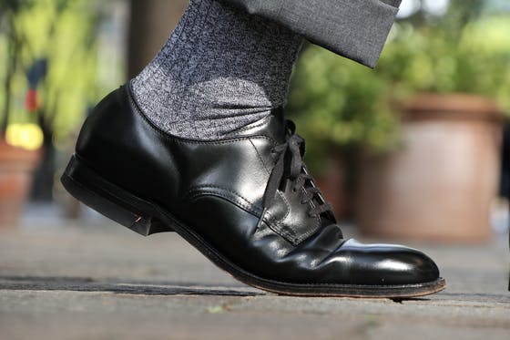 メランジカラーはグレーを展開。ドレスカジュアルにも取り入れやすく、温かみを感じるソックスです。