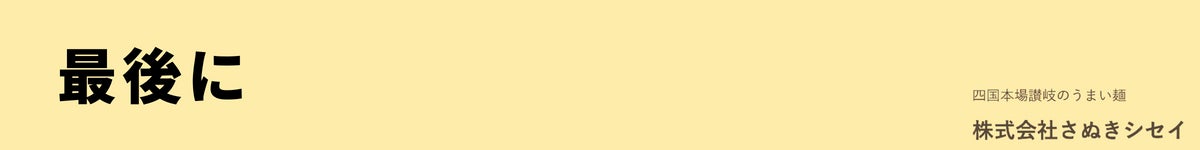 しかし、「最後のゴール」とは思っていません。今後もよりみなさまによろこんでいただける、愛していただける「とっておきの讃岐うどん」開発を目指して、乾麺の開発を続けていく所存です。