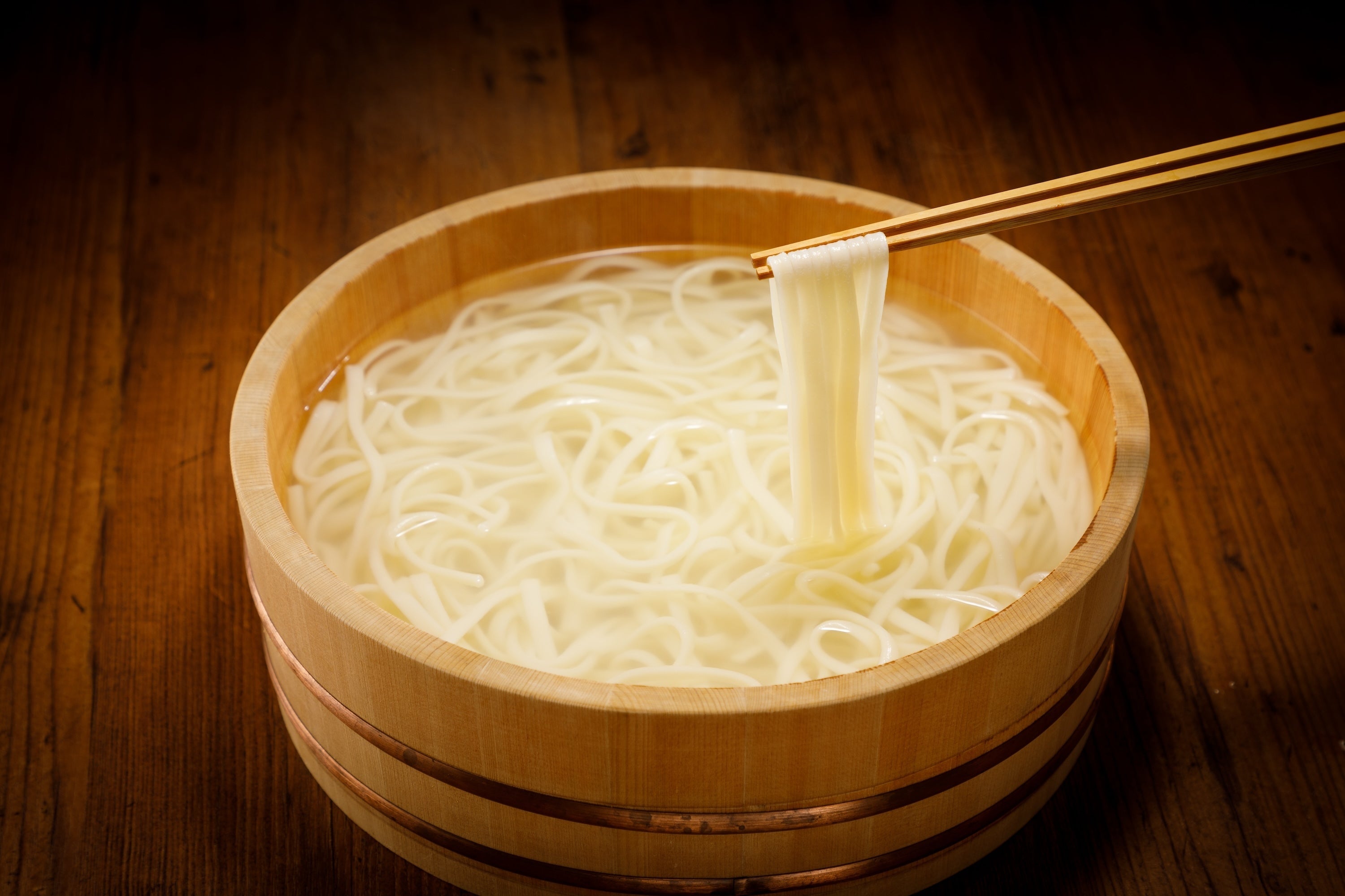 うどんのおいしさを追求した結果、美しく柔らかな黄金色の麺ができ上がりました。