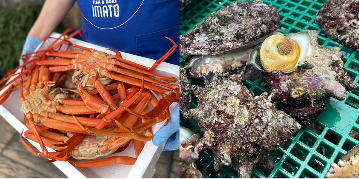 新湊産の紅ズワイガニや、富山湾産のサザエ。
