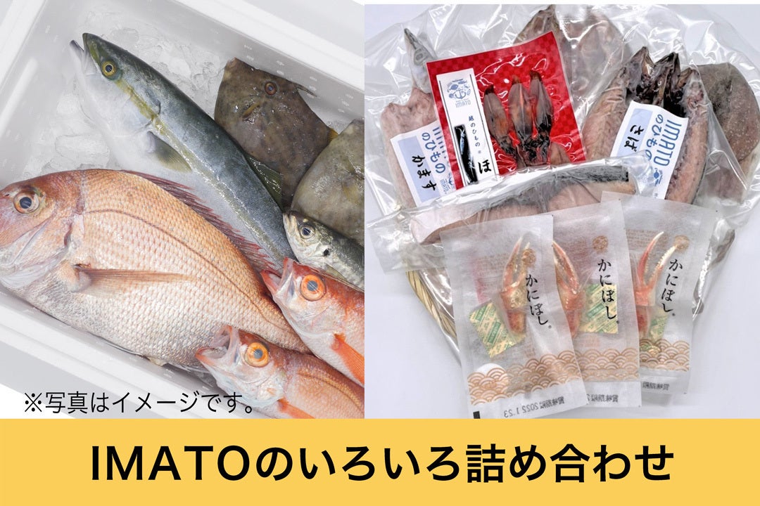 リターンといたしまして、今回ご紹介いたしました梅魚Ⓡの詰め合わせの他、IMATOが自信を持ってお届けします、干物や鮮魚の詰め合わせも、各価格帯でご用意しております。