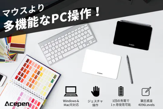 「Acepen」は、作業効率を大幅に向上させるマルチタッチを実現するPC用スマートタッチパッドです。マウスとタブレットを行き来する必要がなく、複数の機能の完璧な組み合わせが実現します。Windowsシステムと互換性があり、より幅広い機器でご活用いただけます。