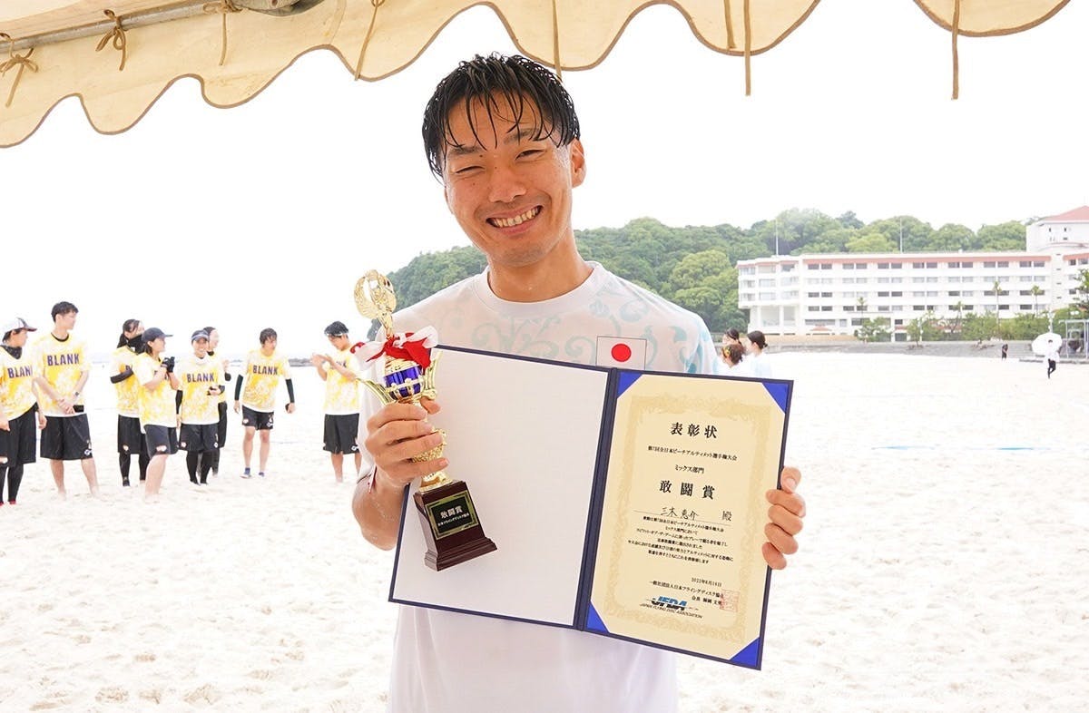 昨年度の第7回全日本ビーチアルティメット選手権大会(和歌山県白浜町)では私自身がキャプテンを務めるチーム「SubRosa」で全日本準優勝。個人では優秀選手賞もいただきました。