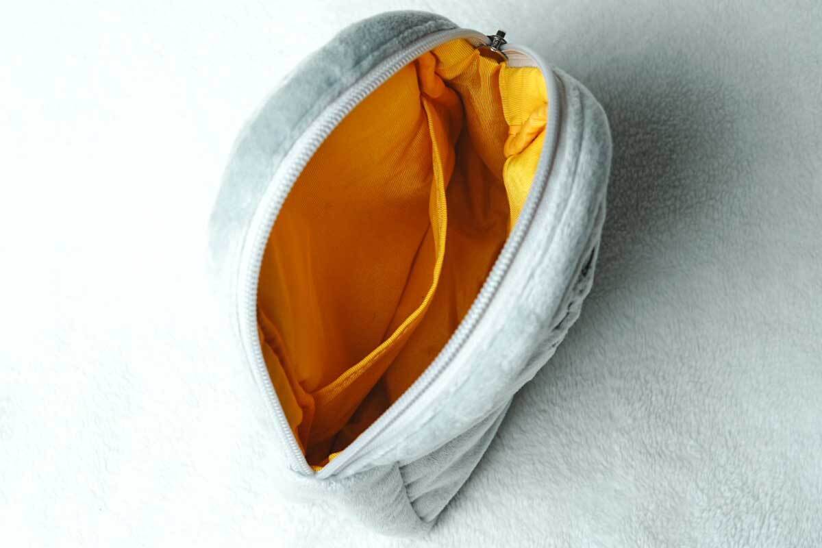 外側にポケットが付いているため、スマホや神社仏閣巡りの際にいただいたパンフレットなどを入れておくことができます。手のひらサイズで軽くて持ち運びしやすく、ぬいぐるみのように中綿が入っているので御朱印帳をはじめとしたさまざまな収納物を保護できます。