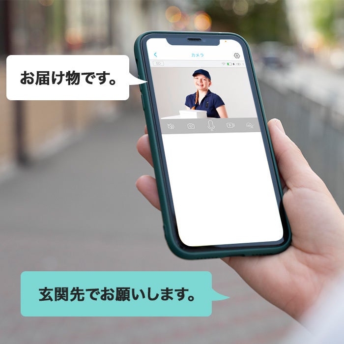 玄関にカメラを設置すると、宅配の受け取りにも便利です。マイクボタンを押してしゃべるだけで配達員と会話が可能です。