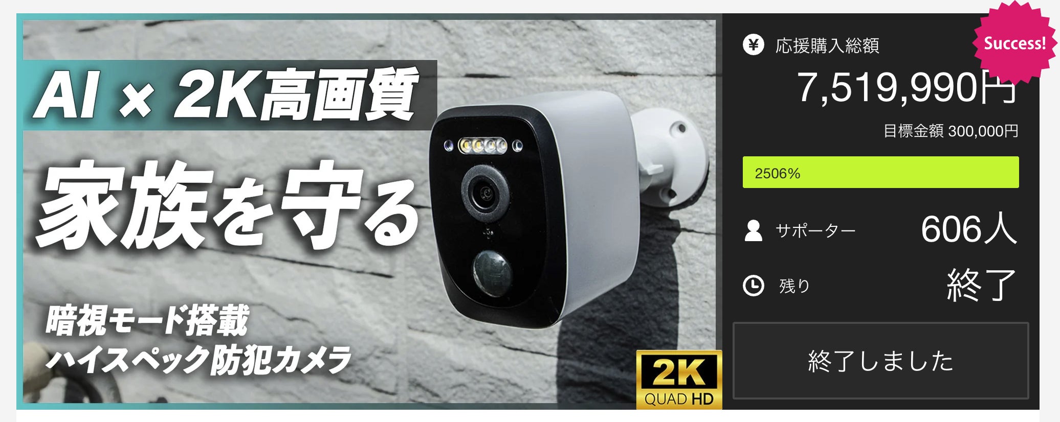 第一弾のプロジェクトも606名の方々に応援していただきました。