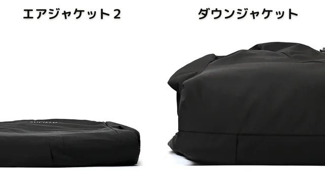 従来のジャケットは同等の保温性を保つためには、1kg以上も重さがある対して、「エアジャケット2」はわずか2mmで、厚さは一般のグースダウンの1/3です。
