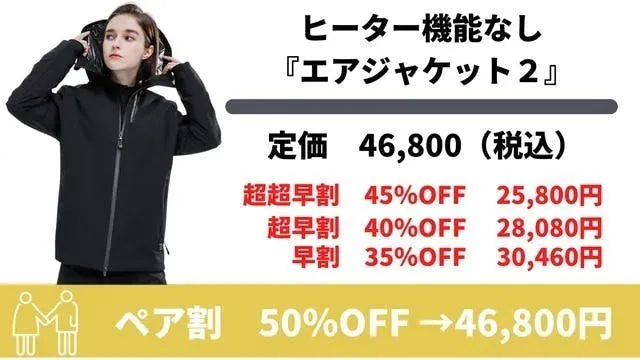 前作に引き続きヒーター付きジャケットも用意しておりますが、ヒーター機能搭載していないシリーズも、求めやすい価格で用意しております。さらに今回はカラー展開、デザインや機能性もバージョンアップしたため、利用シーンに合わせてお選びいただけます。