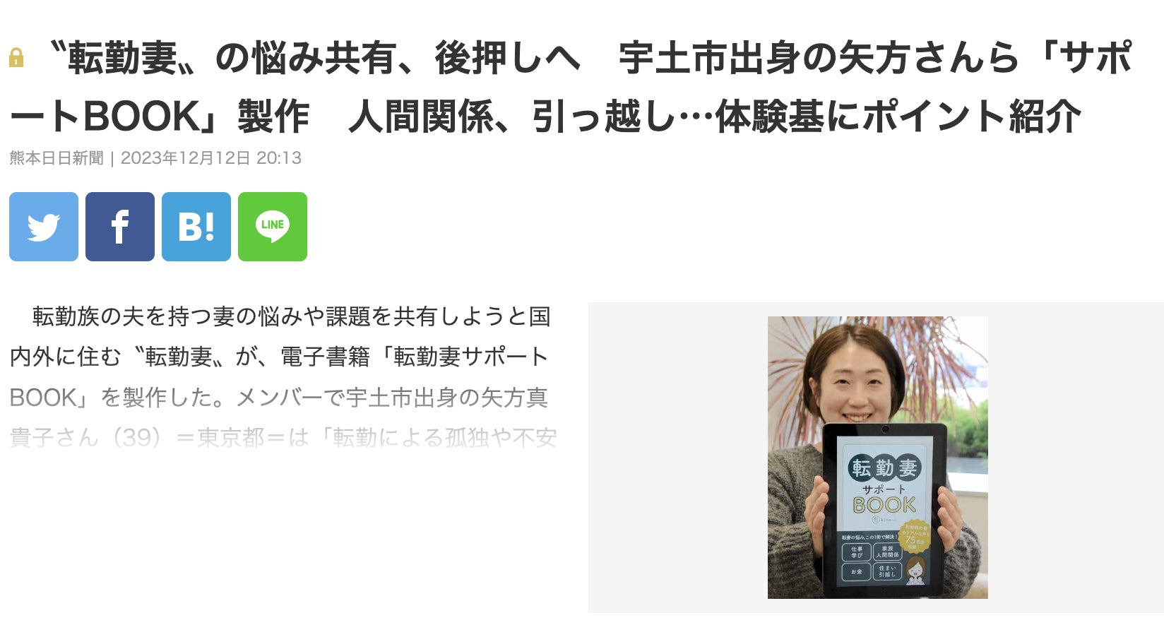 \本日(2023年12月13日付)、熊本日日新聞朝刊に「転勤妻サポートBOOK」の記事が掲載されました!/