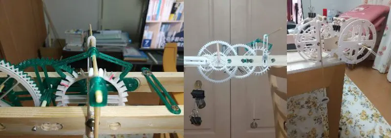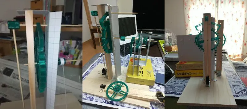 3Dプリンターで製作した歯車を組み立て、動きの悪い箇所を調整していきます。かなり根気のいる作業です。