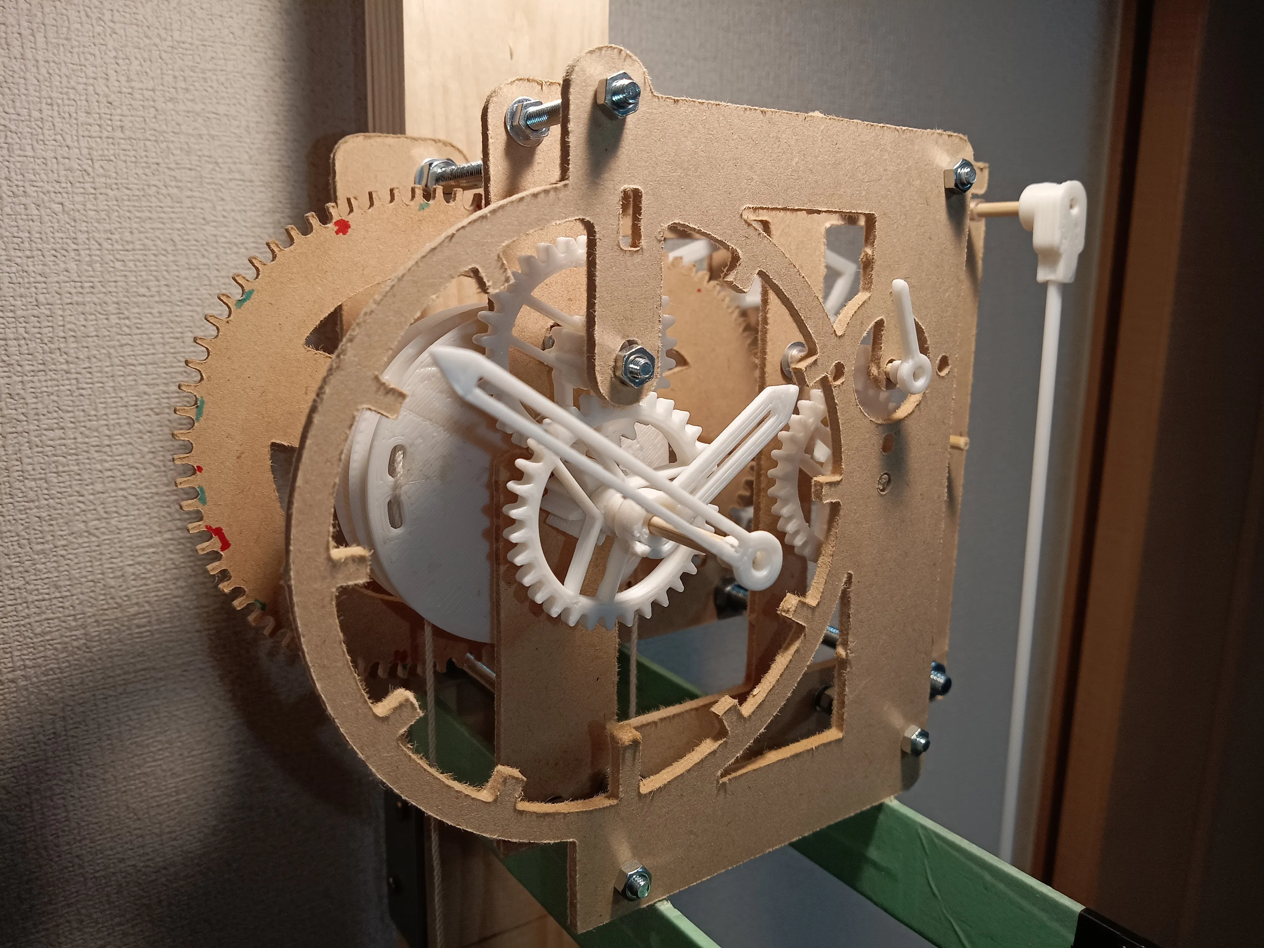 歯車が増えると、紙の支柱ではさすがに…。