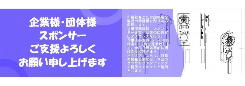 ・スポンサー様向け講座は2024年3月~5月に開催。日程と場所は後日ご相談させて頂きます。交通費は支援者様参加者様負担。 ※1・※2 ともに、対象の数量と期間は、今回のクラウドファンディングで提供するキットと期間とします。