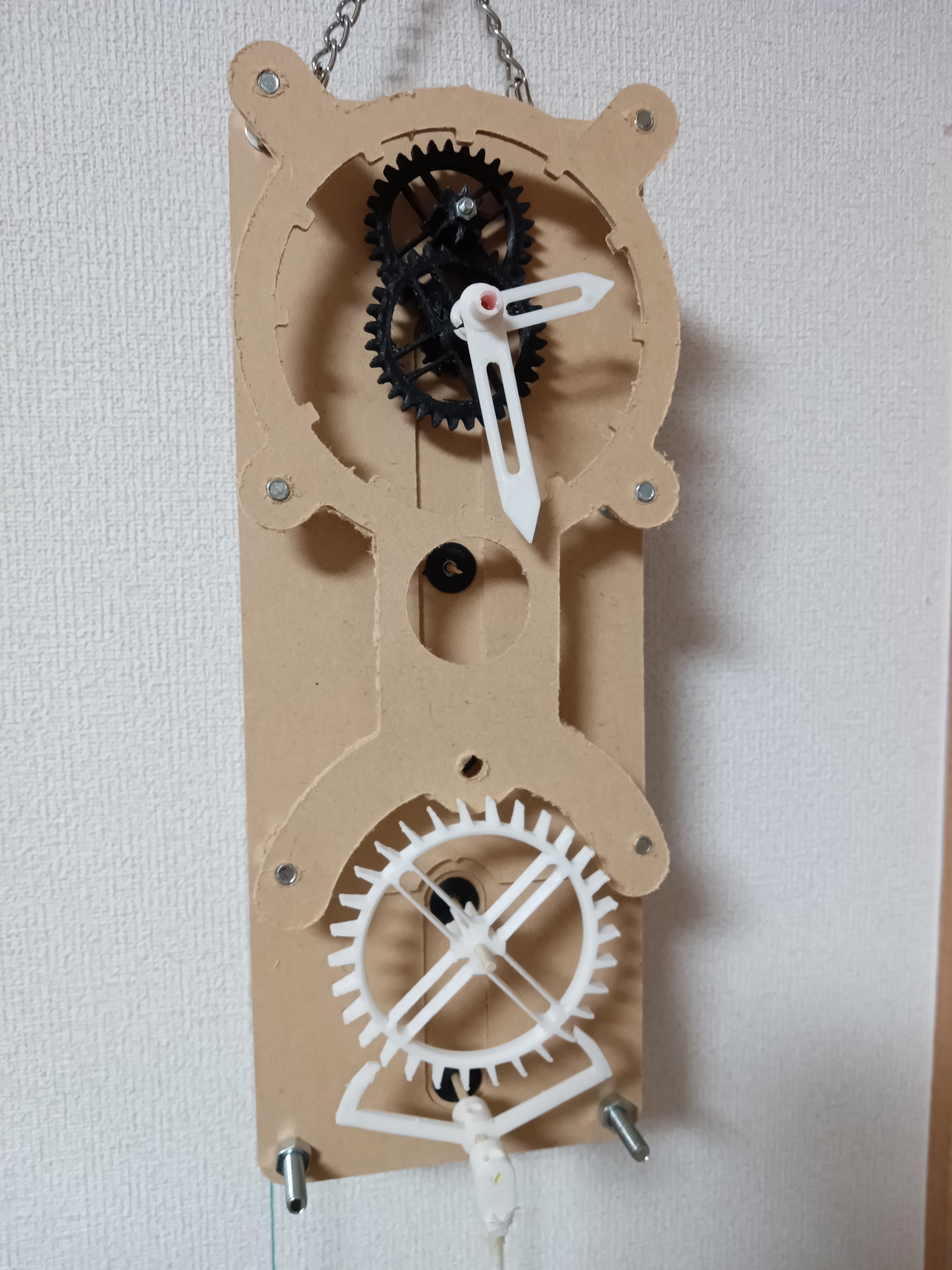 時計盤のバリを粗々取ってはめてみました。時針と分針が白いと、なんとなく映えて見えます。