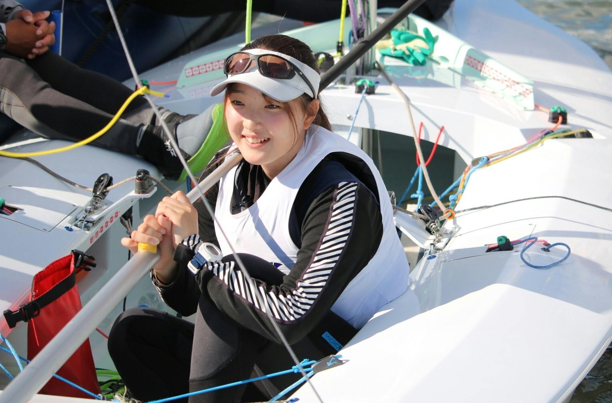 陸上や風待ちの時に見せる笑顔とレース中にみせる真剣な表情のギャップが印象的な赤松佑香!