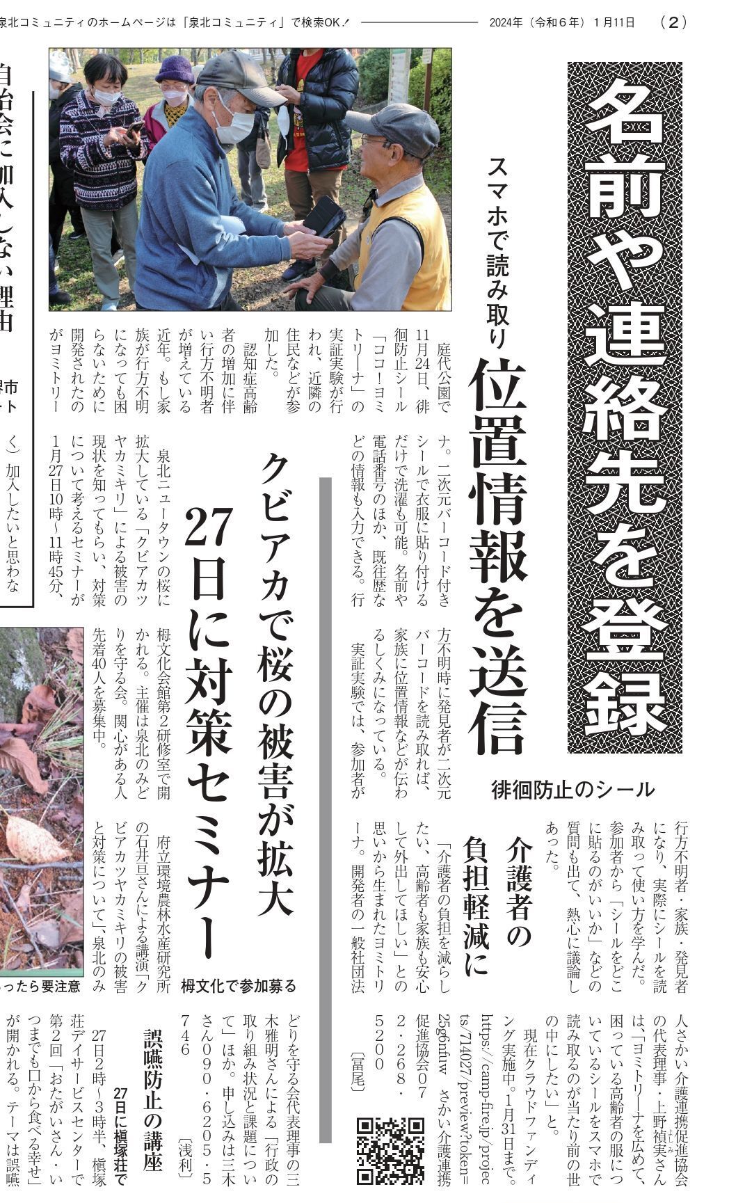 泉北コミュニティ(1/11新年号)に掲載していただきました!